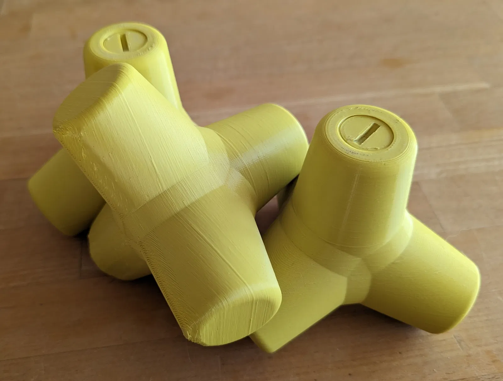Tetrapod rỗng, có nút vặn ren để khóa, có thể đổ đầy cát làm rào cản cho robot hút bụi. Phiên bản in thử nghiệm này nặng khoảng 350g, đủ để chặn robot trên gạch men.