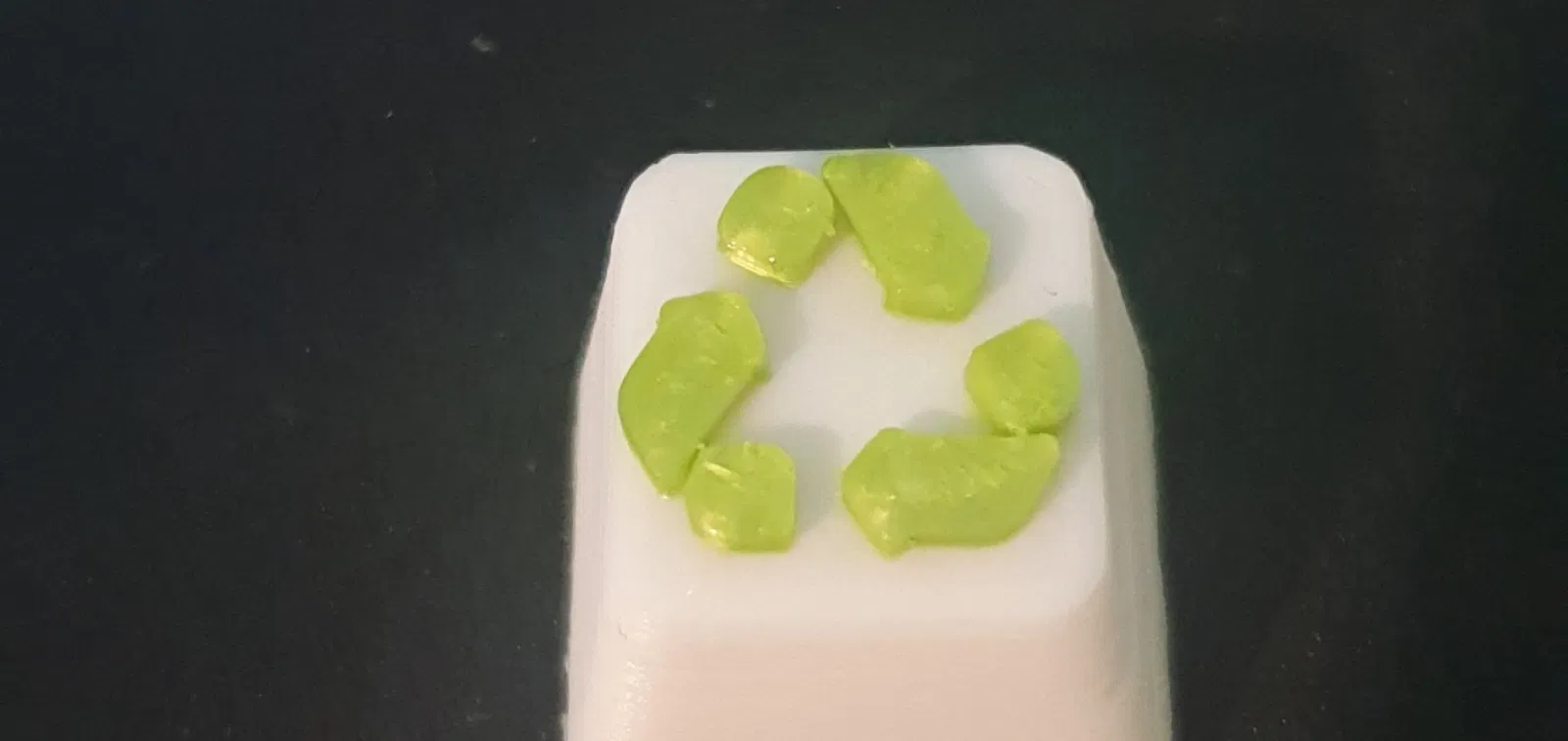 Tái chế keycap được in bằng màu trắng và xanh lá cây