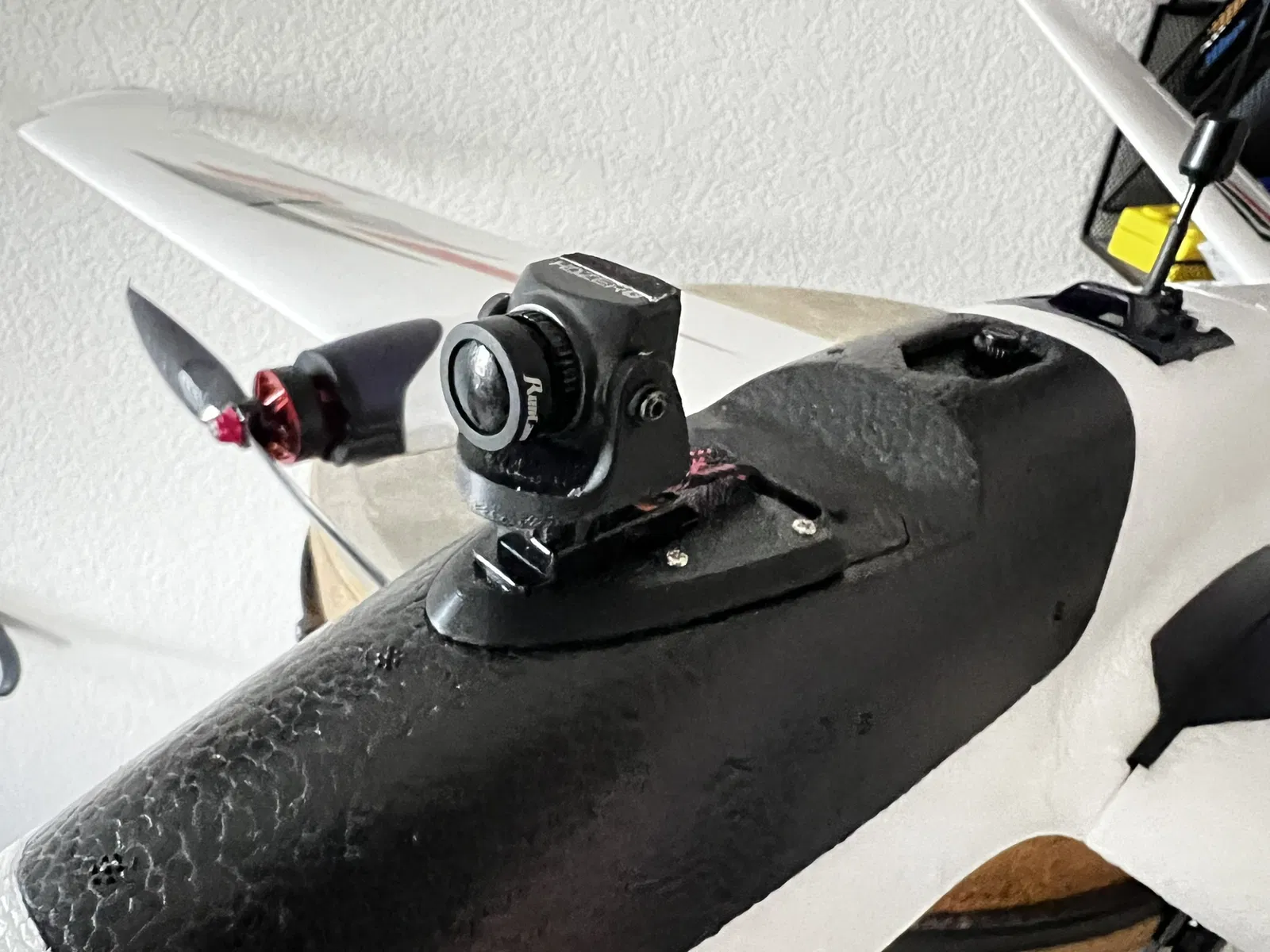 Cái mount đơn giản, ốp sát cho chiếc AtomRC Swordfish. Thiết kế này cho phép gắn servo 9g và camera 19mm, có thêm chỗ cột dây rút để bảo vệ đầu nối.