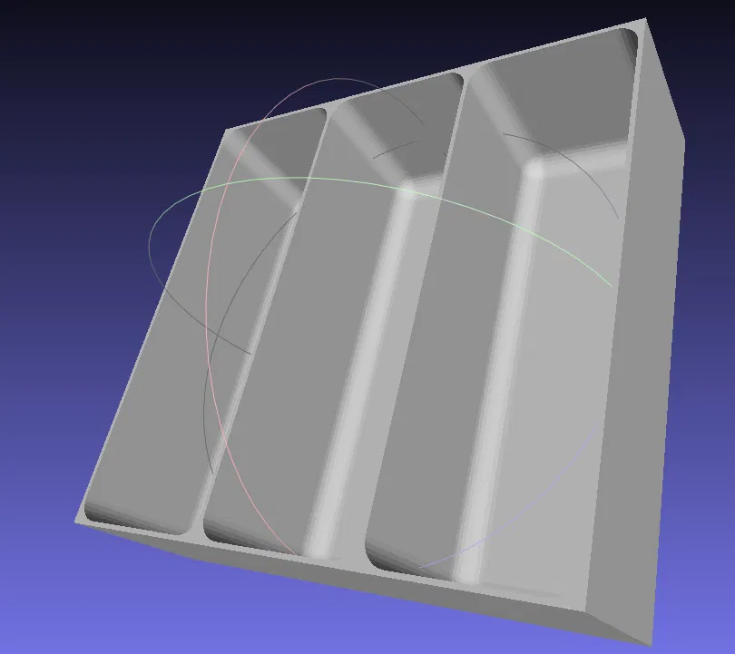 Khay đựng dao nĩa in 3D toàn bộ, vừa vặn cho hộc tủ 530x365x130mm. Có nhiều ngăn cho muỗng, nĩa, dao và cả các vật dụng dài. In bằng PLA, không cần giá đỡ. Có thêm tùy chọn khối hộp 3 ngăn để dễ lấy đồ hơn.