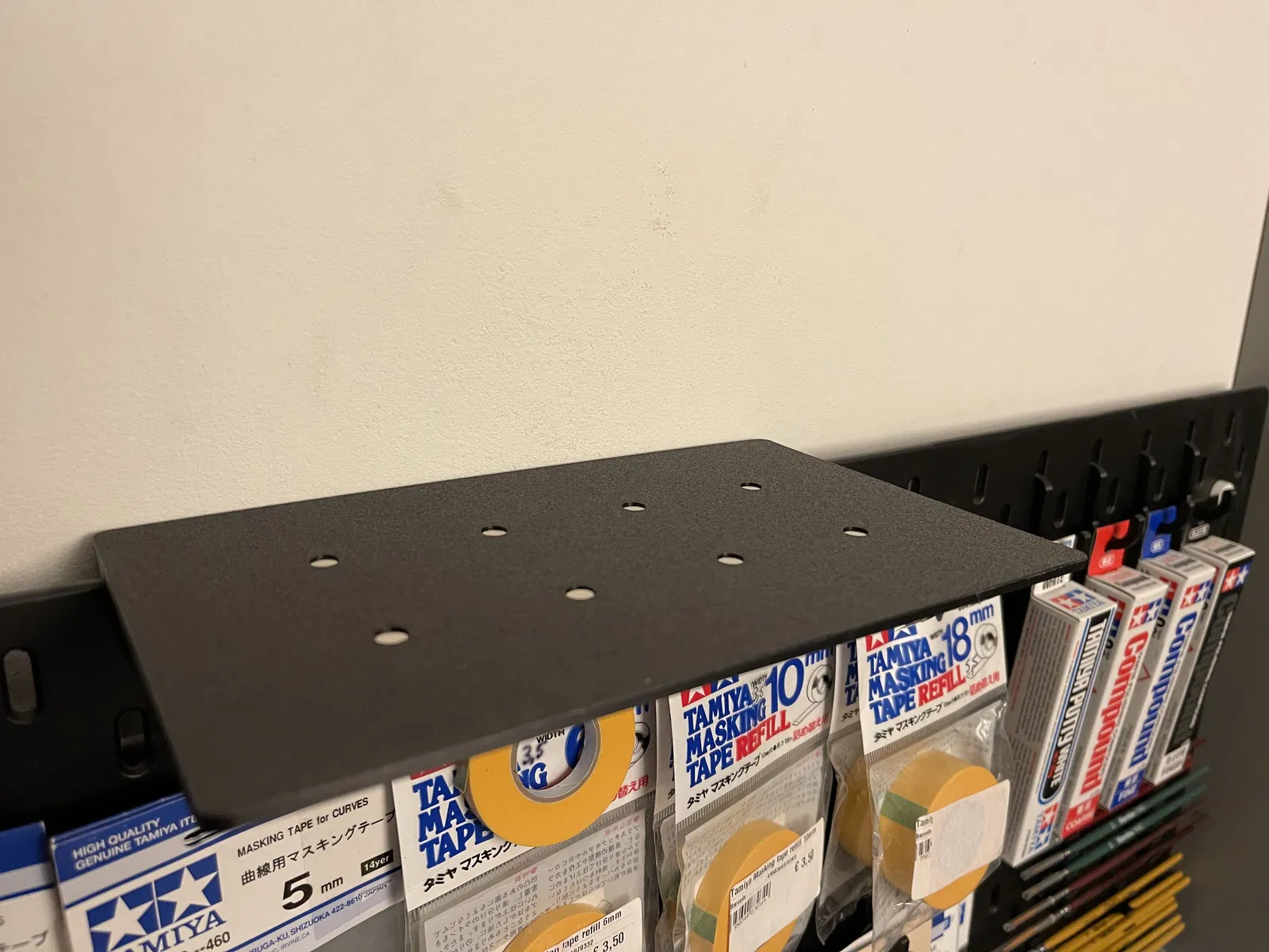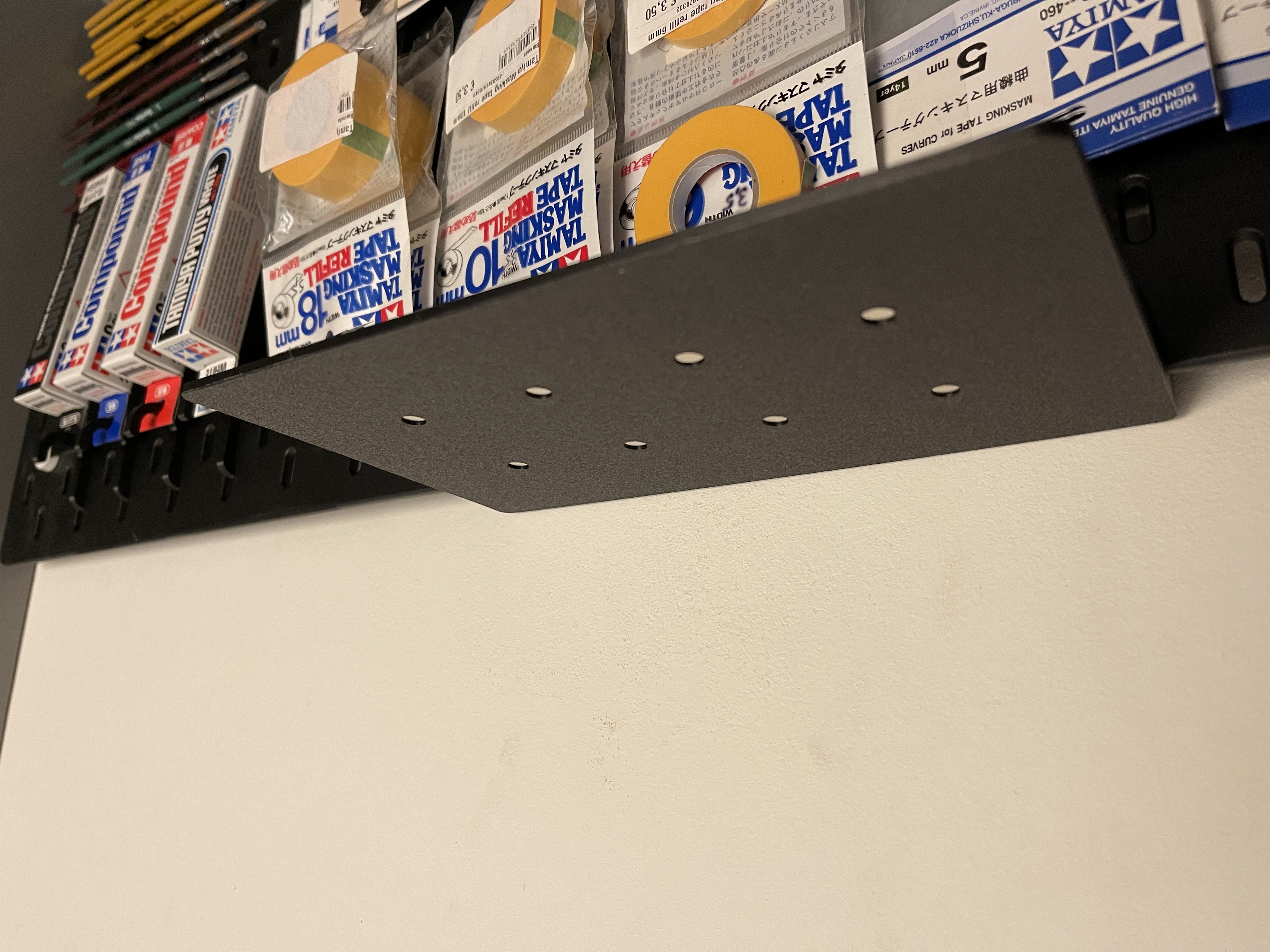 Cái kệ này gắn phía trên bảng Ikea Skadis, thêm không gian lưu trữ 209,5x12mm mà vẫn giữ nguyên công dụng các lỗ phía trên. Nó kết hợp Ikea Skadis với đế Gridfinity 3x5 có nam châm, cho phép bạn mở rộng khả năng sử dụng bảng Skadis của mình lên một tầm cao mới.