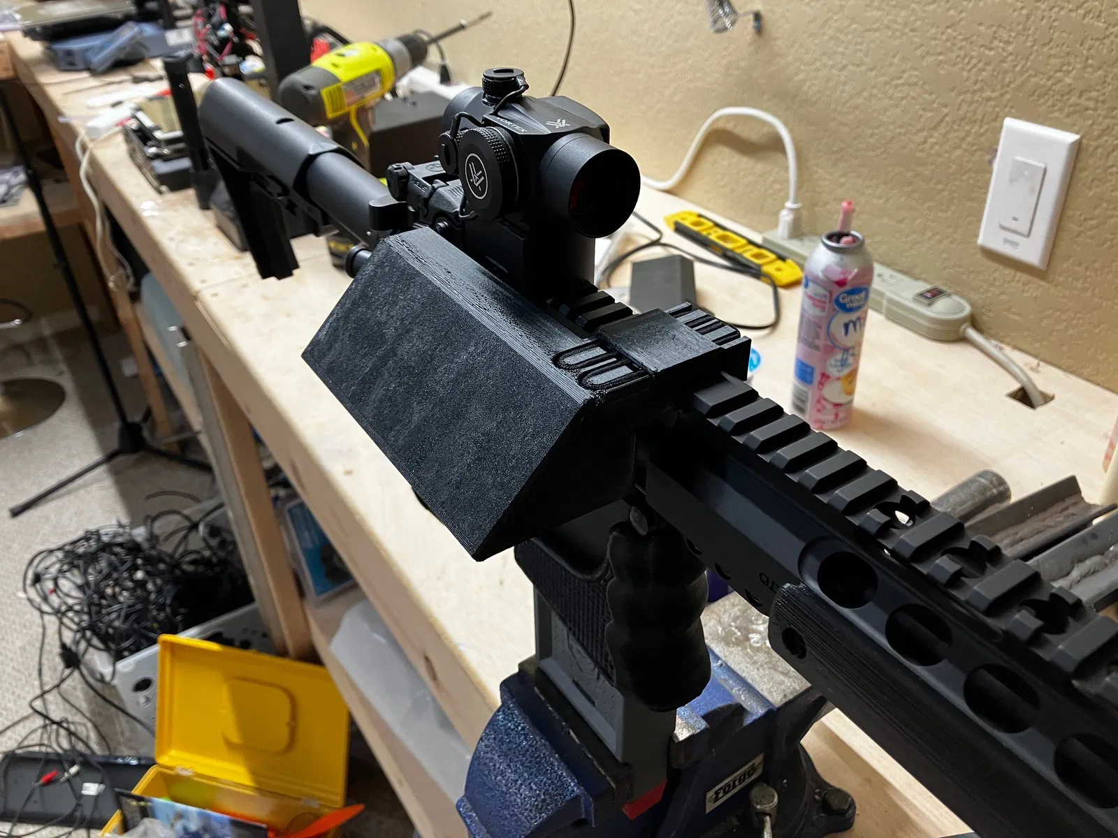 Trình làng bộ chắn vỏ đạn in 3D cực chất cho AR của anh em! Không còn lo vỏ đạn nóng bay tứ tung hay làm bẩn trường bắn. Lắp đặt siêu dễ dàng chỉ với một sợi dây buộc tóc. Trải nghiệm bắn súng ngầu lòi, không vướng bận!