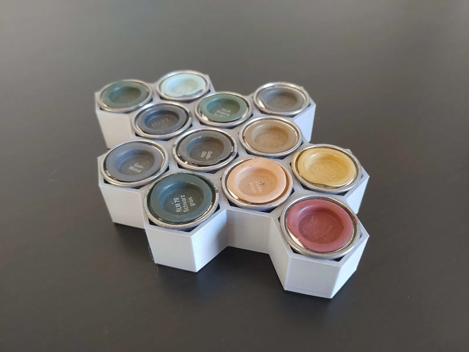 Giá đỡ sơn men Revell dạng lục giác, có thể ghép nối liền mạch với nhau và lắp ráp bằng cách ép. Sản phẩm này được thiết kế để giữ các lọ sơn men Revell một cách gọn gàng, phù hợp với những người yêu thích mô hình và cần một giải pháp lưu trữ sơn hiệu quả.