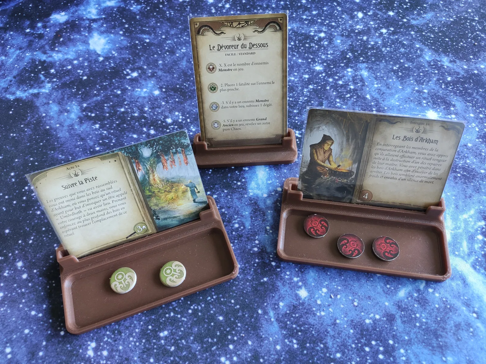Những chủ sở hữu đơn giản và nhỏ gọn này có thể hỗ trợ các thẻ tham chiếu, hành động và chương trình nghị sự, với một khay cho mã thông báo doom và manh mối. Chúng cũng có thể được sử dụng với bất kỳ trò chơi bảng nào có thẻ có kích thước của Mỹ.