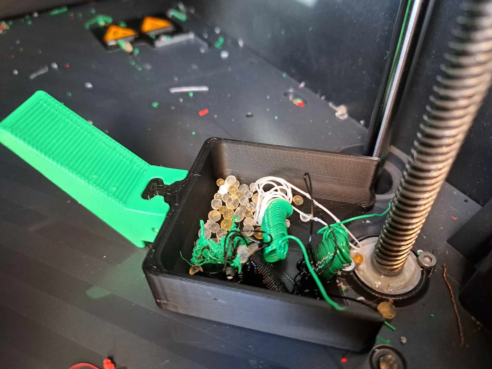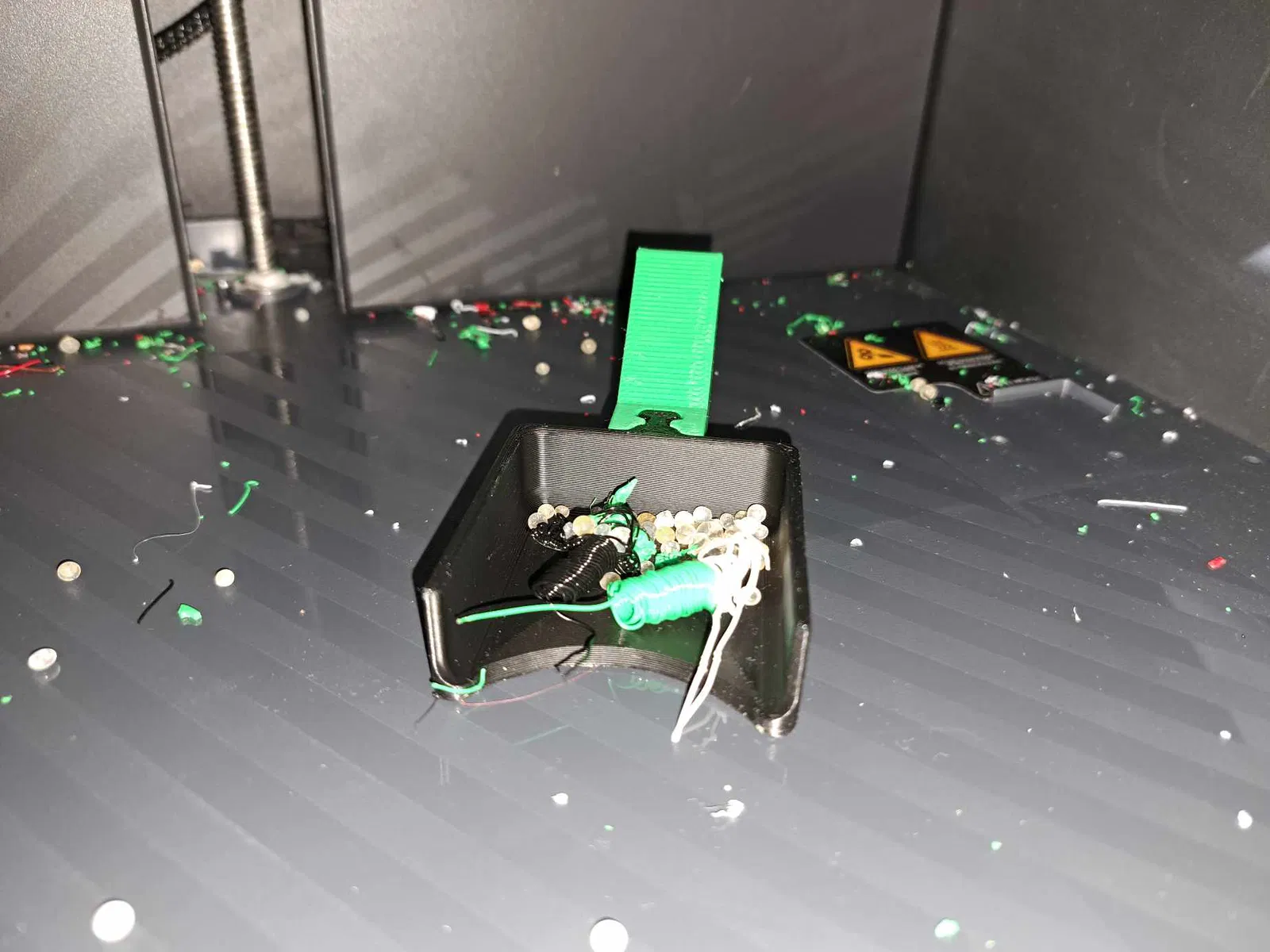 Tui cần một cái xẻng mini để lấy mấy cục silicate (hạt hút ẩm) ở đáy máy P1S. In dễ lắm, không cần support đâu. File tải về có 2 mảnh nha. Sao lại là 2 mảnh? Tại tui định làm thêm mấy món đồ mini khác nữa đó mà. Dùng một đoạn dây tóc (filament) để nối 2 mảnh lại, chỉ cần nhét nó vô lỗ rồi cắt cho bằng là được. Nó sẽ dễ dàng tháo ra nếu muốn, mà rung kiểu gì cũng không rớt đâu.