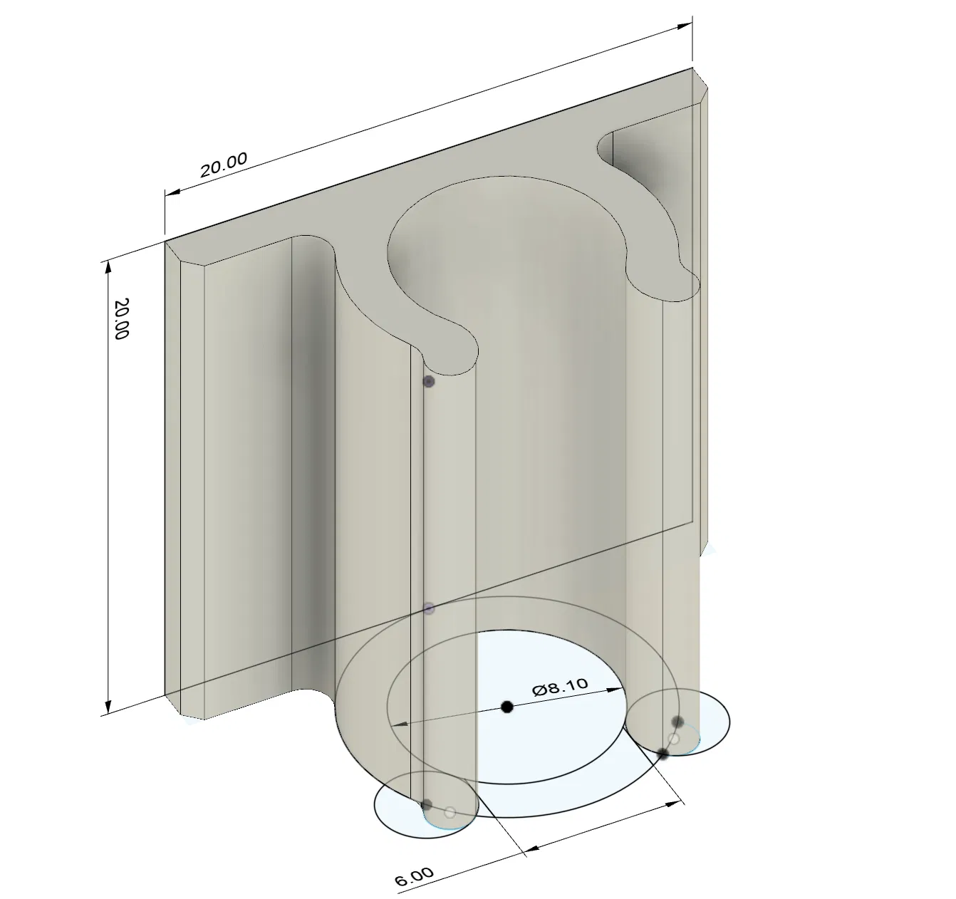 Thêm một cái kẹp cáp (8mm) nữa đây. Cái này bạn nhớ in theo chiều dọc nha, đường kính trong là 8.1mm và kích thước đế là 20x20mm.