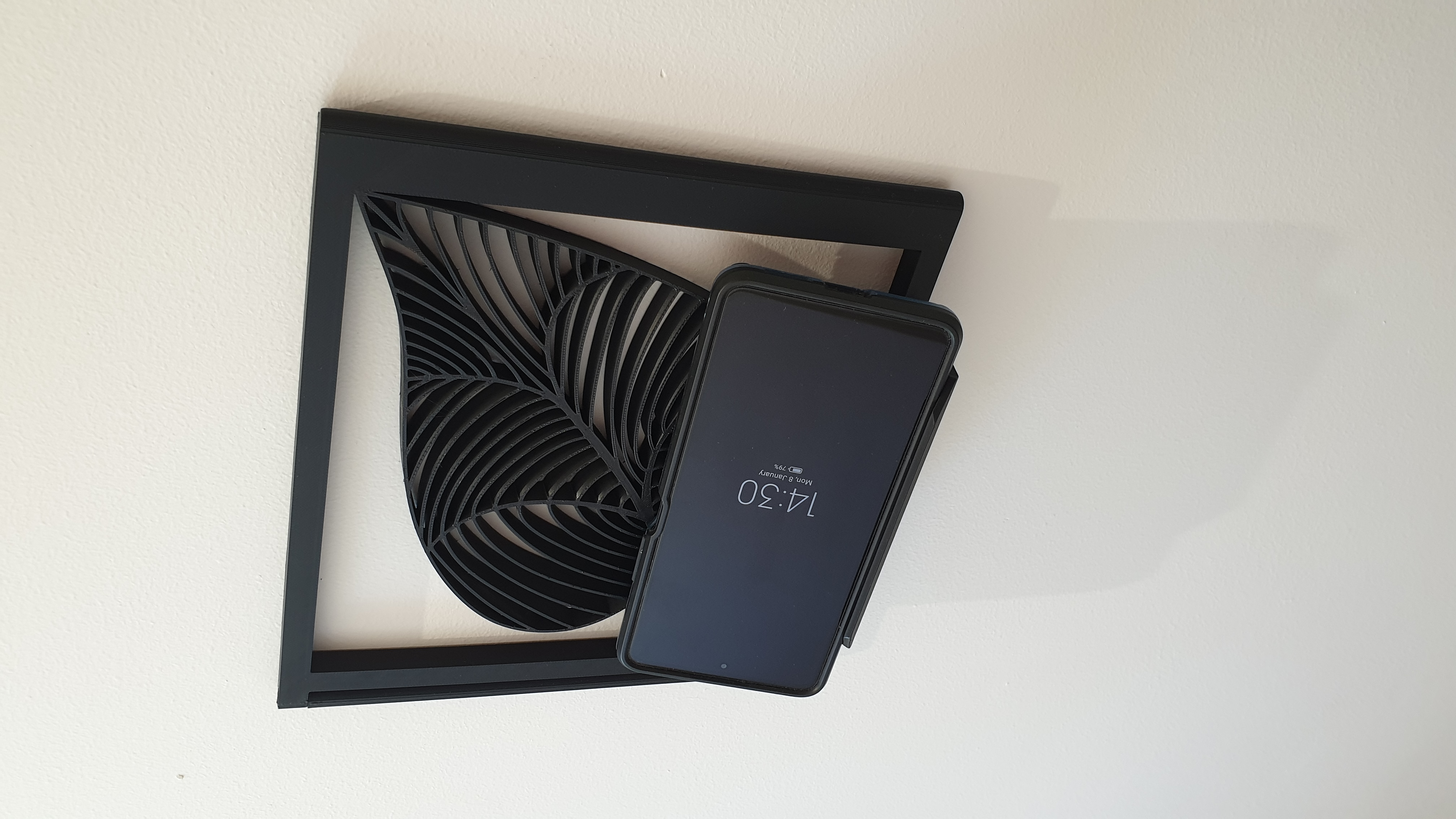 Đương nhiên, một giá đỡ điện thoại treo tường thông thường sẽ trông kỳ lạ khi đặt cạnh bồn cầu, nhưng một vài món đồ trang trí thì hoàn toàn phù hợp. Từ đó, "Giá đỡ điện thoại treo tường trang trí" ra đời - một giá đỡ điện thoại có thể xoay ra ngoài để xem tối ưu khi sử dụng, nhưng lại được ngụy trang như một tác phẩm nghệ thuật khi không sử dụng (để giữ cho phòng tắm luôn sang trọng).