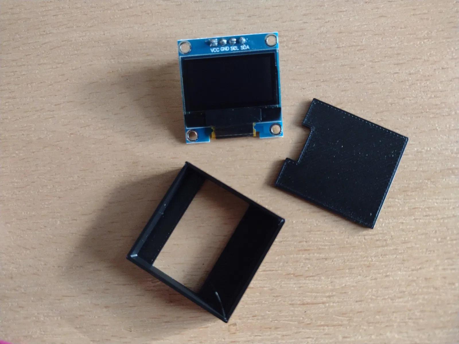 Chiếc hộp đơn giản này được thiết kế để đựng vừa màn hình OLED kích thước 0,96 inch. Bo mạch của màn hình có kích thước 27x28mm, tuy nhiên cần lưu ý là một số loại màn hình có thể có kích thước hơi khác một chút (ví dụ 27x26mm).