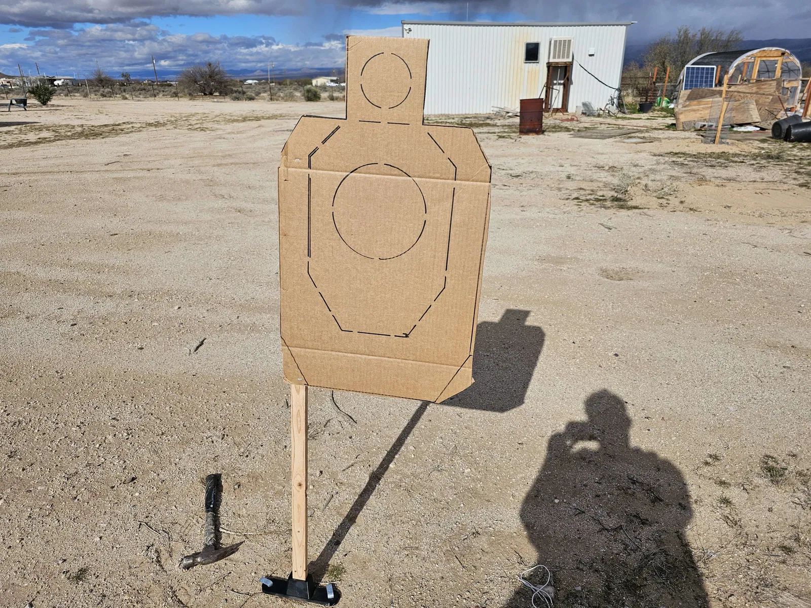Danh sách vật liệu: 1x Chân đế bia 2x cọc lều HOẶC đinh Thanh gỗ dán 1 inch x ½ inch Bìa carton hoặc bia IDPA hoặc IPSC