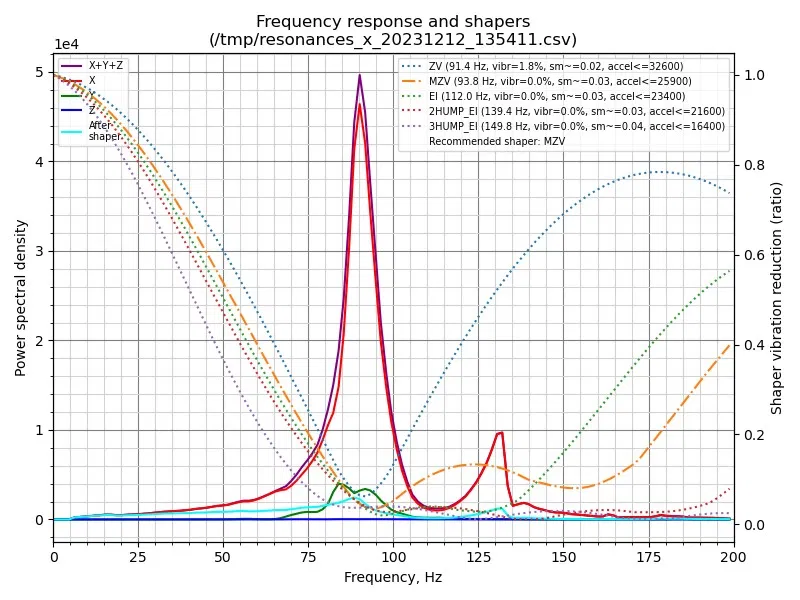 Cái bracket này giúp làm cứng phần đầu tool head khá nhiều, đặc biệt là theo chiều X. Hình dưới là biểu đồ trước và sau khi gắn cho trục X trên con V0.2 của tui. Tuyên bố miễn trừ trách nhiệm: Kết quả của bạn sẽ khác tui, nhưng bạn chắc chắn sẽ thấy tần số rung được cải thiện!