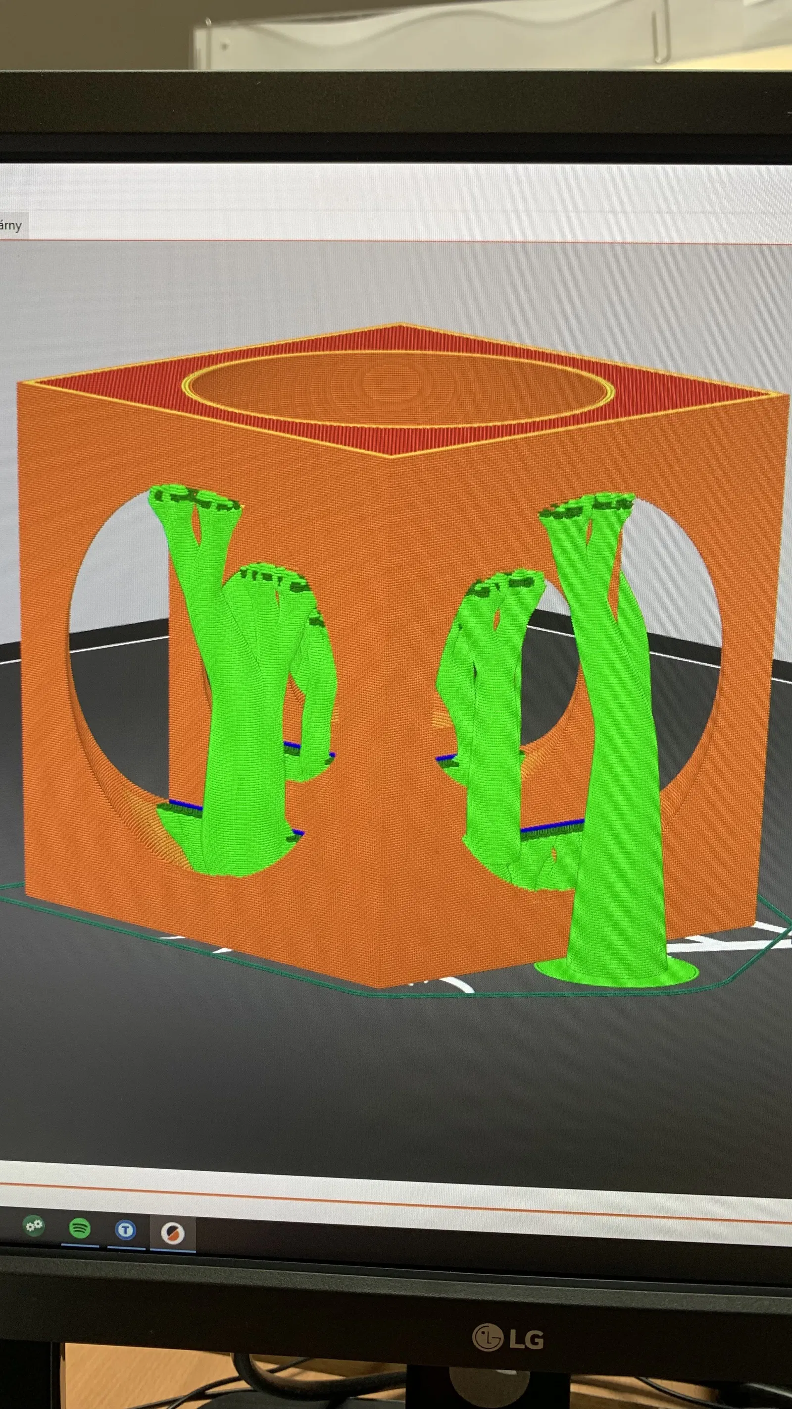 Khối lập phương trong khối lập phương trong khối lập phương quen thuộc, giờ đã được nâng cấp tường mỏng hơn. Mô hình này dựa trên thiết kế gốc, chủ yếu gia công bằng máy CNC và cần in với "tree supports" để dễ dàng loại bỏ. Phiên bản V2 này cải tiến đáng kể độ mỏng của tường.