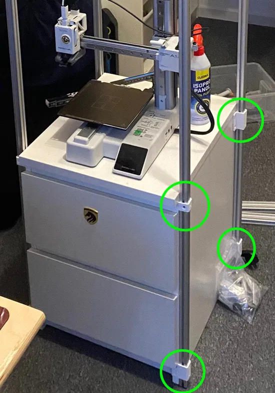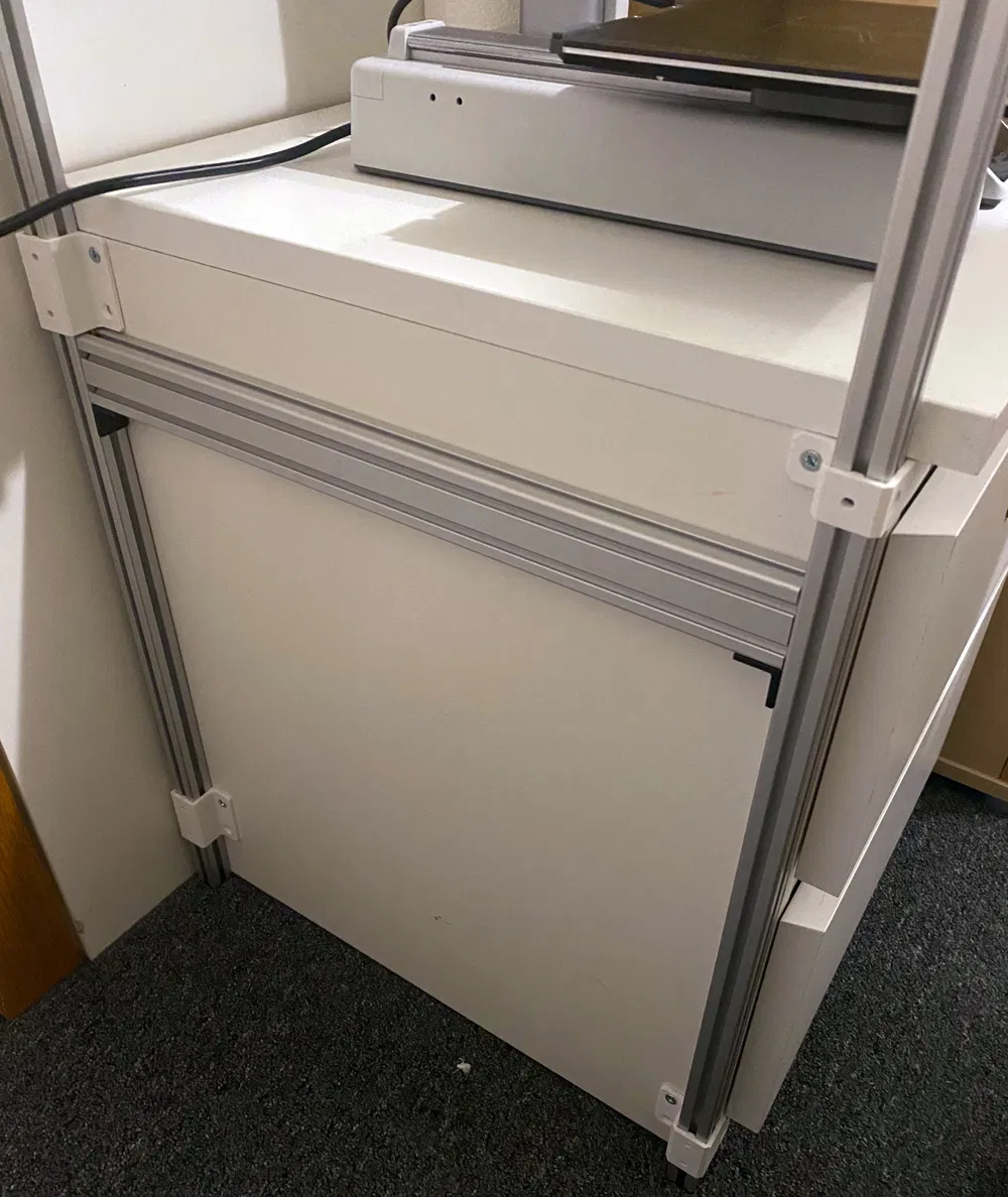 Giá đỡ làm riêng cho tủ IKEA MALM, giúp bạn tạo kệ đựng máy in 3D và filament với profile nhôm 20x20mm. Dễ dàng lắp đặt, tương thích với Bambu A1 mini và Prusa Mini. Vật liệu PETG, in fill 50% cho độ chắc chắn cao.