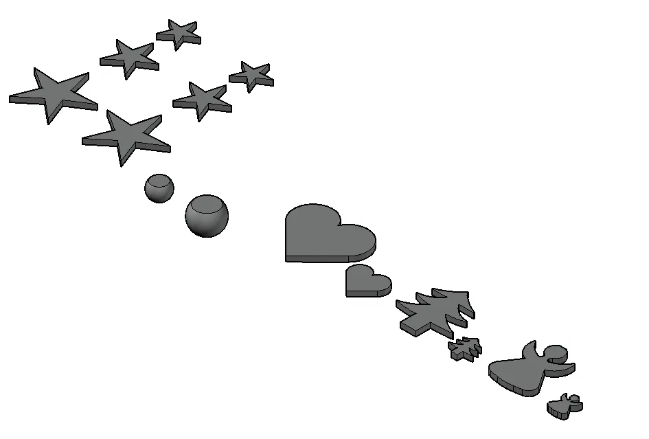 Các bộ phận cho Vòng nguyệt quế hạt óc chó làm thủ công. In với cài đặt tiêu chuẩn, có thể sơn. Bộ đầy đủ bao gồm các chi tiết trang trí, cây cối, ngôi sao, thiên thần, trái tim, và các họa tiết khác cho dịp Giáng Sinh, Năm mới, hoặc trang trí nhà cửa, tường.