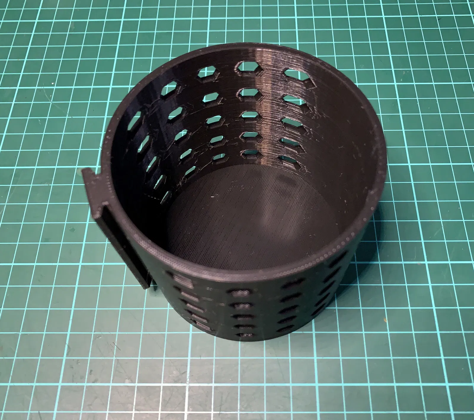 Bản in của tôi được làm bằng sợi PLA+ đen eSUN 1.75mm, với chiều cao lớp 0.2mm và 75% mật độ lưới trên máy in Bambu X1 Carbon. Cần có hỗ trợ in trên tấm đế khi in cốc. Tôi đề xuất in bu lông với 10 đường viền. Các bộ phận được định hướng mặc định theo cách tôi đã in chúng trên bàn máy in của bạn.