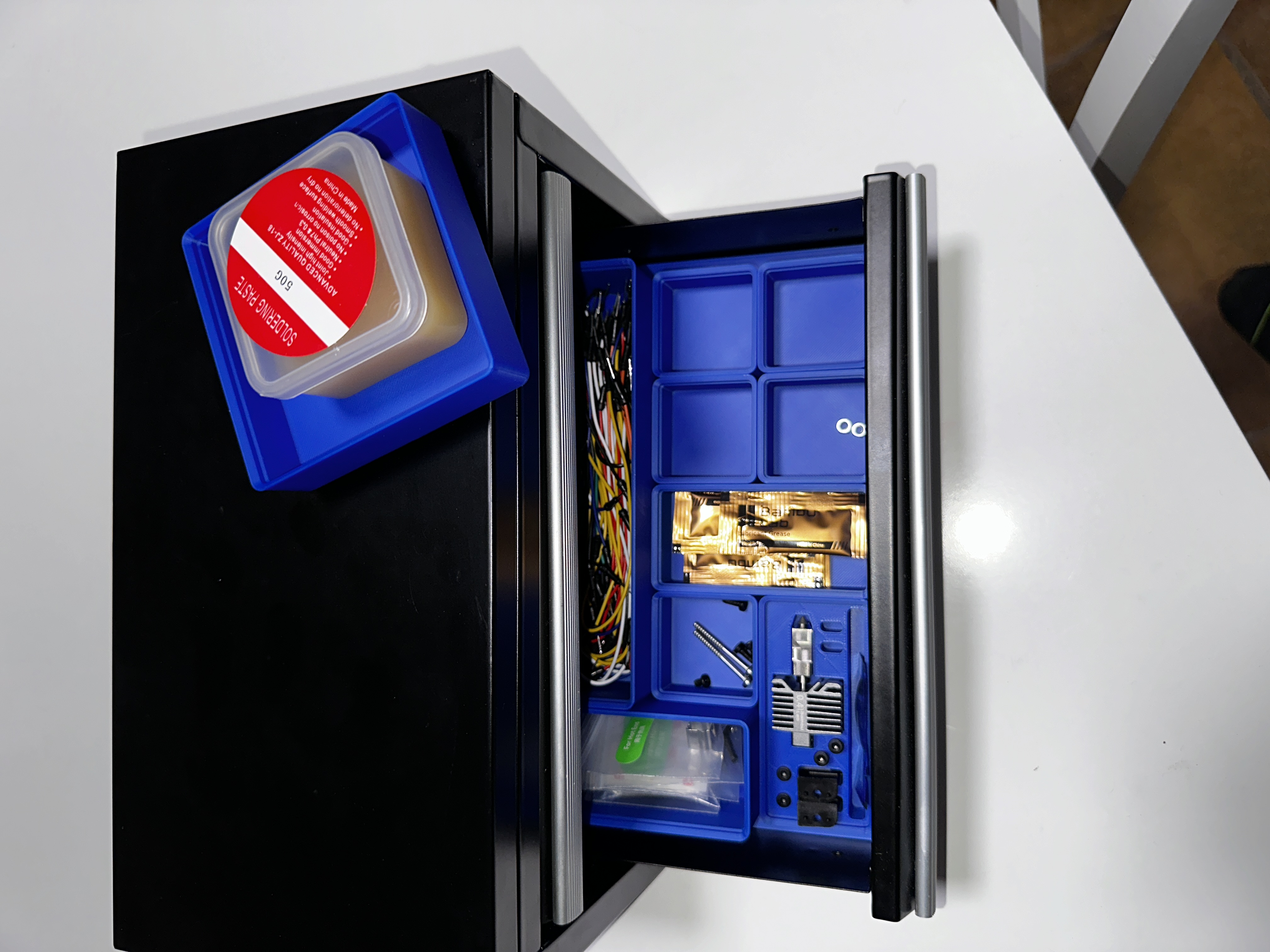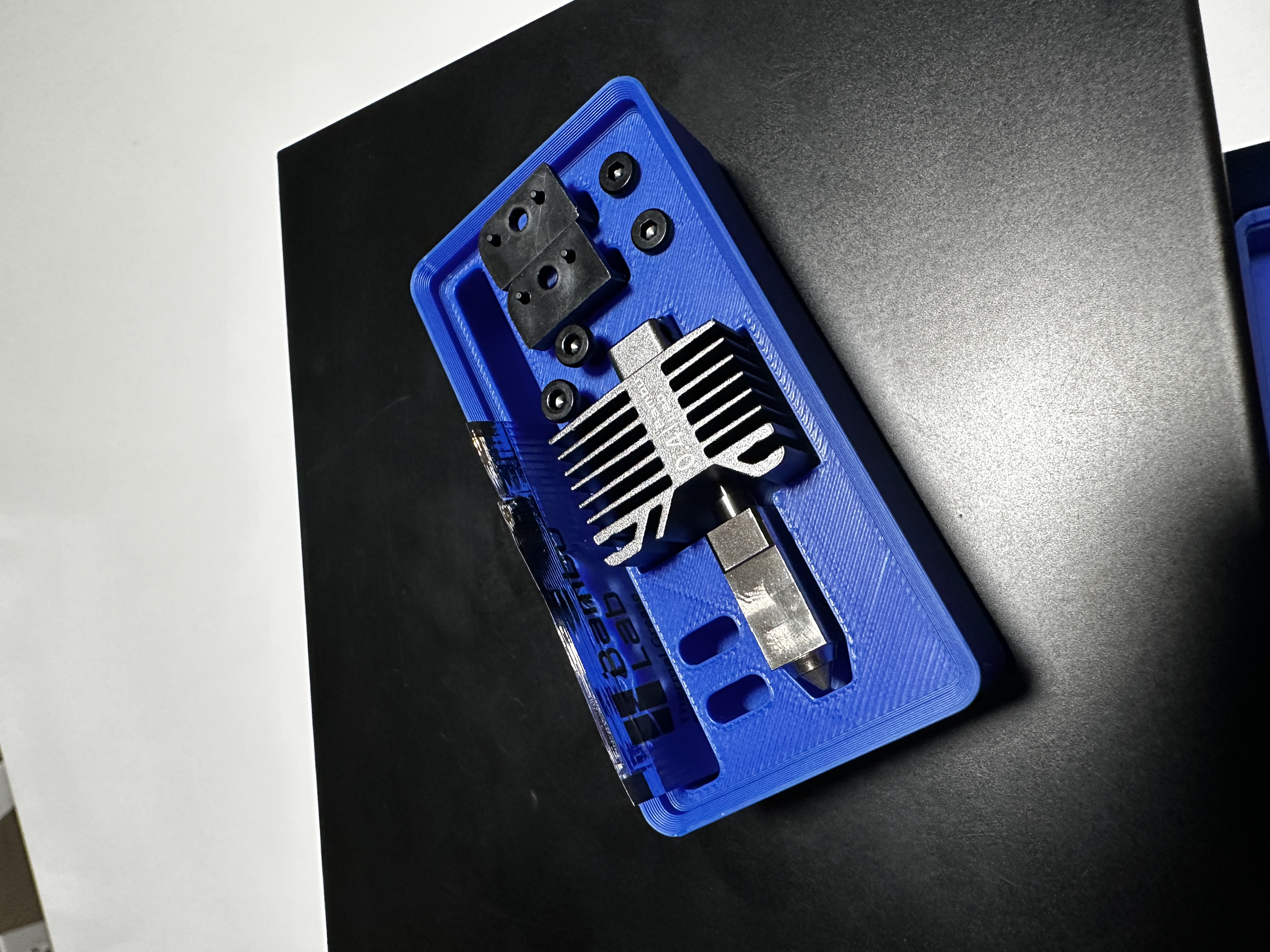 Hộp/khay 1x2x3 đơn giản cho đầu phun và phụ kiện của Bambu P1S. Có khe cắm cho 1 đầu phun (kèm 2 ốc), 2 cái cắt sợi nhựa (tui chưa có lúc chụp hình), 2 cái gạt đầu phun (kèm 1 ốc cho mỗi cái), và 1 khe cho mỡ chịu nhiệt và/hoặc bôi trơn.
