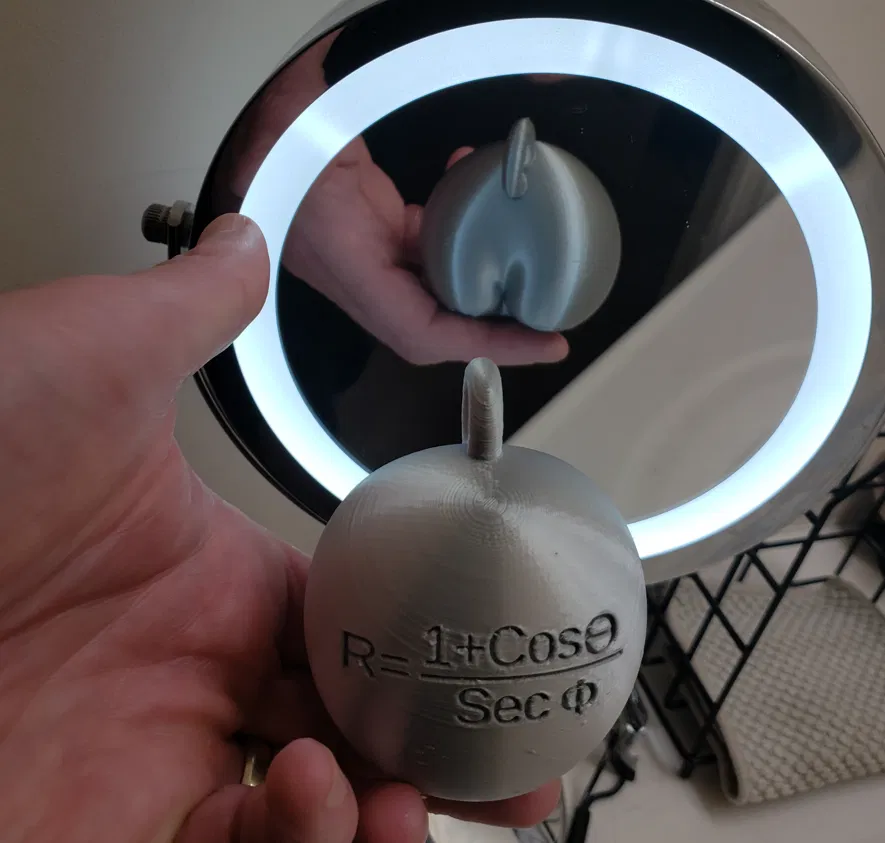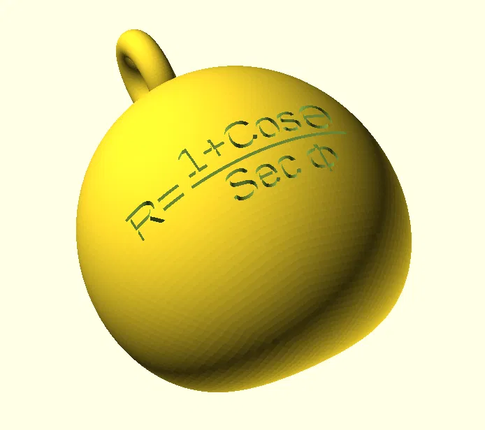 Hình dạng của món đồ trang trí này là biểu đồ tọa độ cầu của phương trình trên mặt nó. Xoay nó trong trình xem để ngắm nhìn mặt sau của nó.