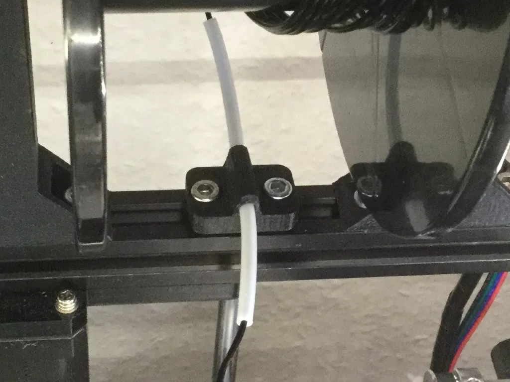 Đây là một hướng dẫn sợi đơn giản sử dụng ống PTFE. Trong trường hợp của tôi, nó được gắn bên dưới ống dây tóc, nhưng về cơ bản bạn có thể gắn nó ở bất cứ đâu để hướng dẫn dây tóc quanh các góc.
