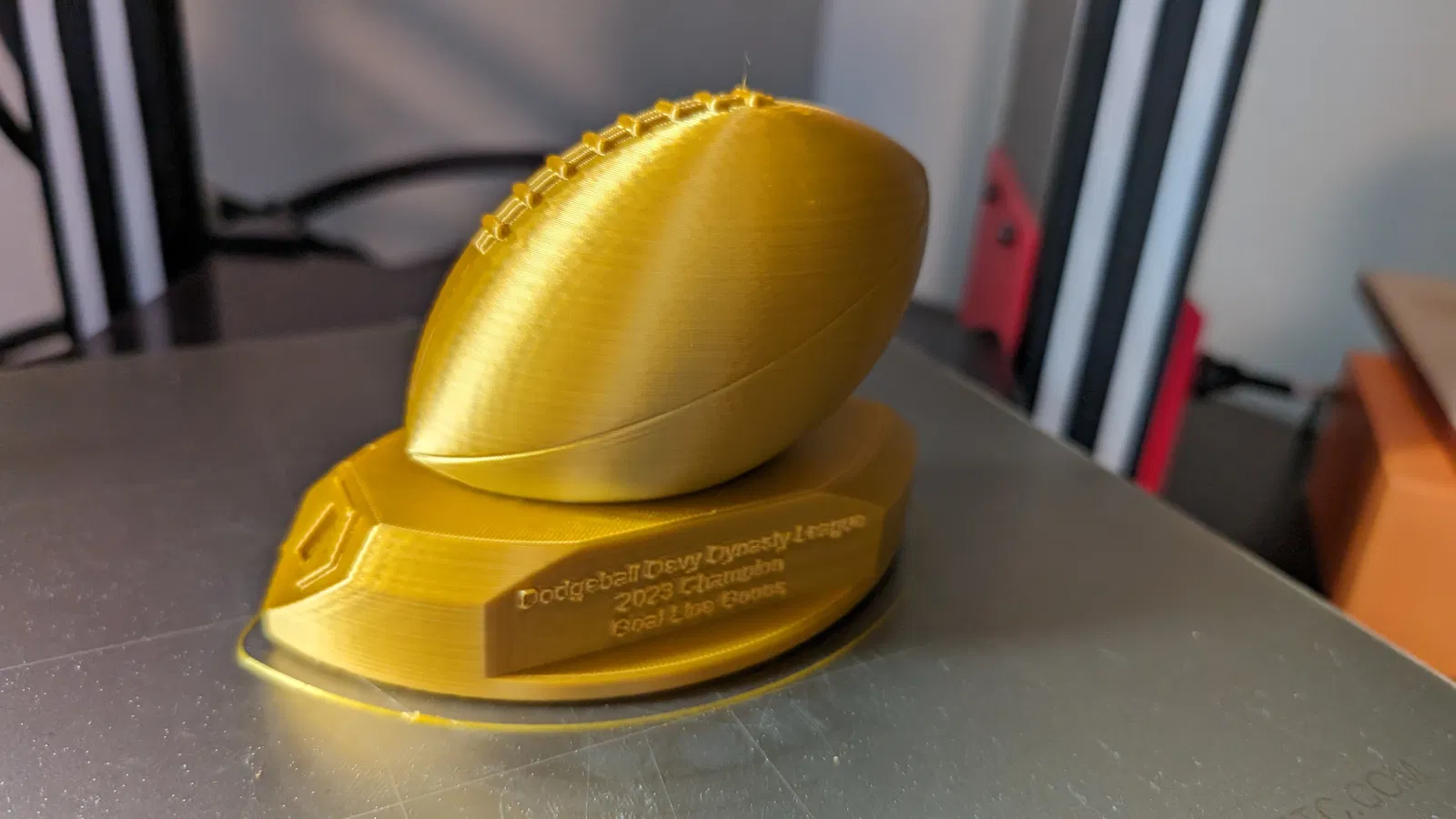 Tui cần một chiếc cúp độc đáo cho giải đấu bóng đá fantasy mà có thể dễ dàng thêm logo và chữ. Tui mới tập chơi nên cái gì mà không cần coi clip YouTube cả tiếng đồng hồ để chỉnh sửa cúp có sẵn là quan trọng. Cái này in dễ lắm mà không cần hỗ trợ gì hết. Hình có chữ nhưng tui đã xóa rồi và xuất ra file .stl với .step để dễ chỉnh sửa. Chiếc cúp vàng tui in bằng PLA.