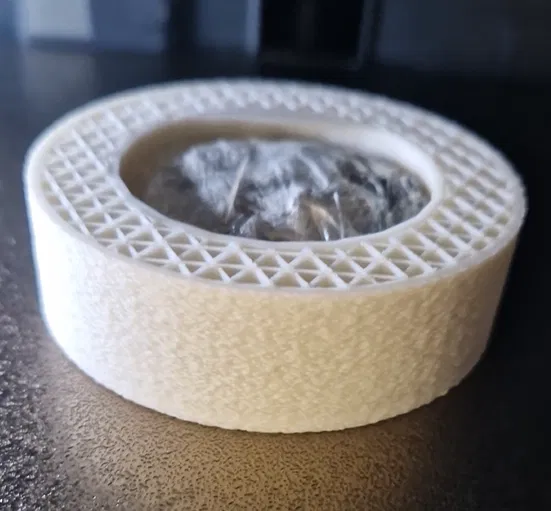 Mẫu puck khúc côn cầu trên băng với kích thước chuẩn và khoang rỗng để thêm tạ. Tùy chọn fuzzy skin cho độ bám tốt, in phát quang để chơi ban đêm. Trọng lượng hoàn thiện có thể đạt chuẩn 150-170 gram.