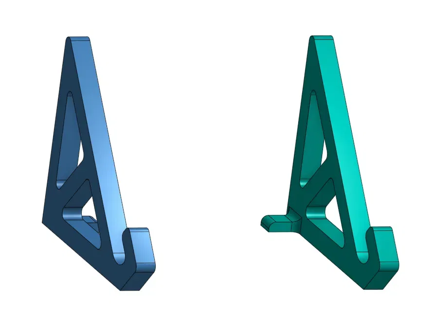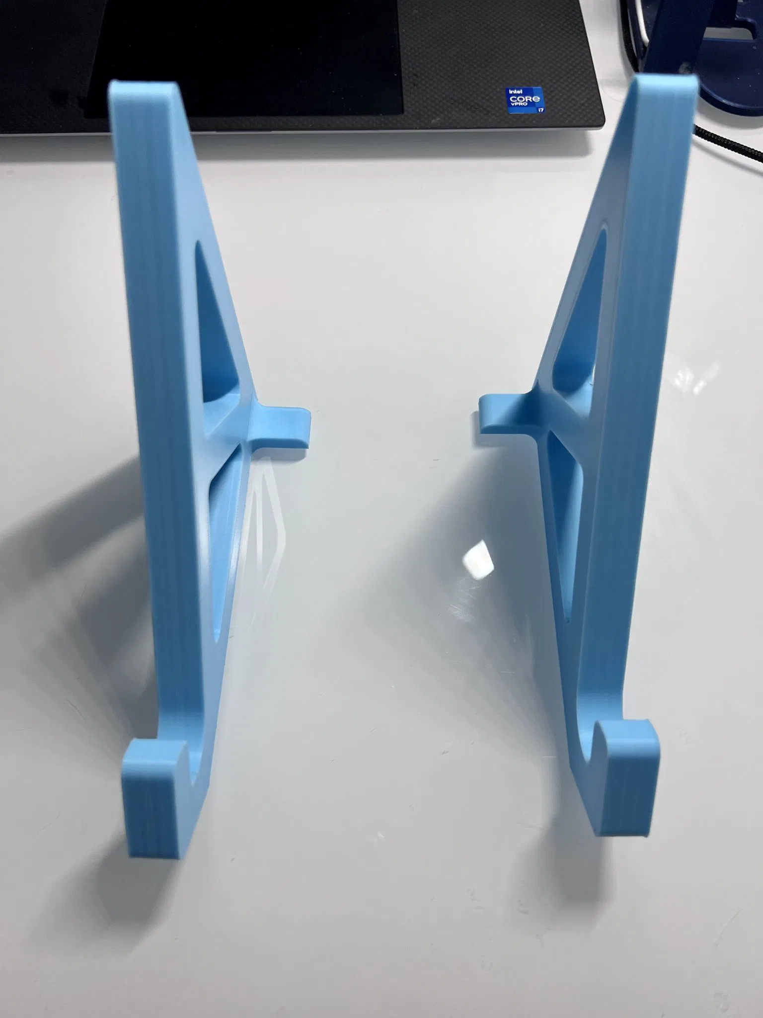 Giá đỡ này được nghiêng ở góc 45 độ và có hai chân không được kết nối để phù hợp với các laptop có chiều rộng khác nhau và tiết kiệm vật liệu. Mặc dù các chân không được kết nối, nó vẫn rất ổn định.