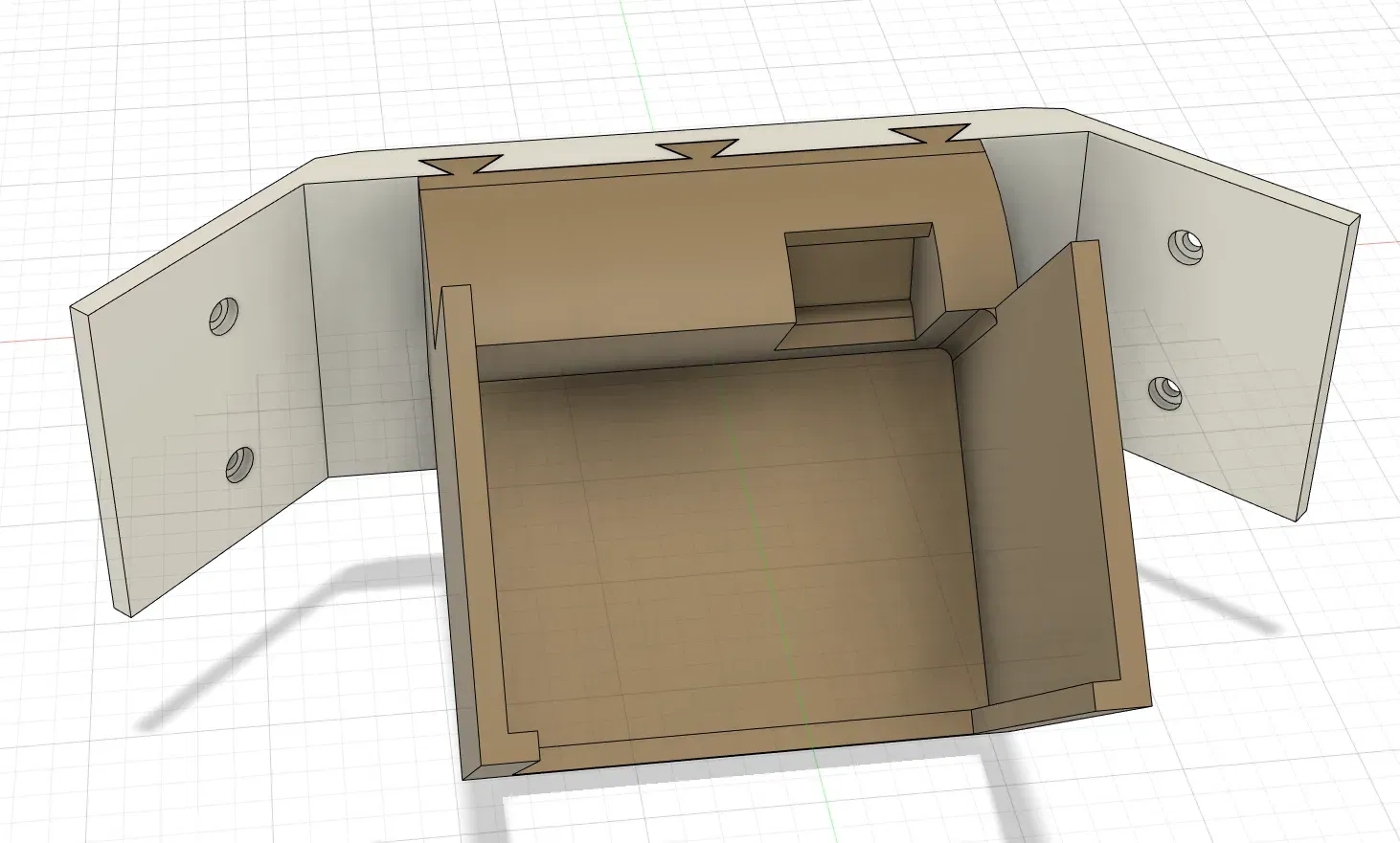 Tôi thích cách mà thiết kế tôi đã remix giữ ngọn hải đăng. Tôi đã thay đổi giá đỡ để phù hợp với góc. Tôi đã thêm các lỗ vít và sử dụng mộng để dễ dàng gắn đế vào tường, sau đó trượt giá đỡ vào các mộng trên đế.