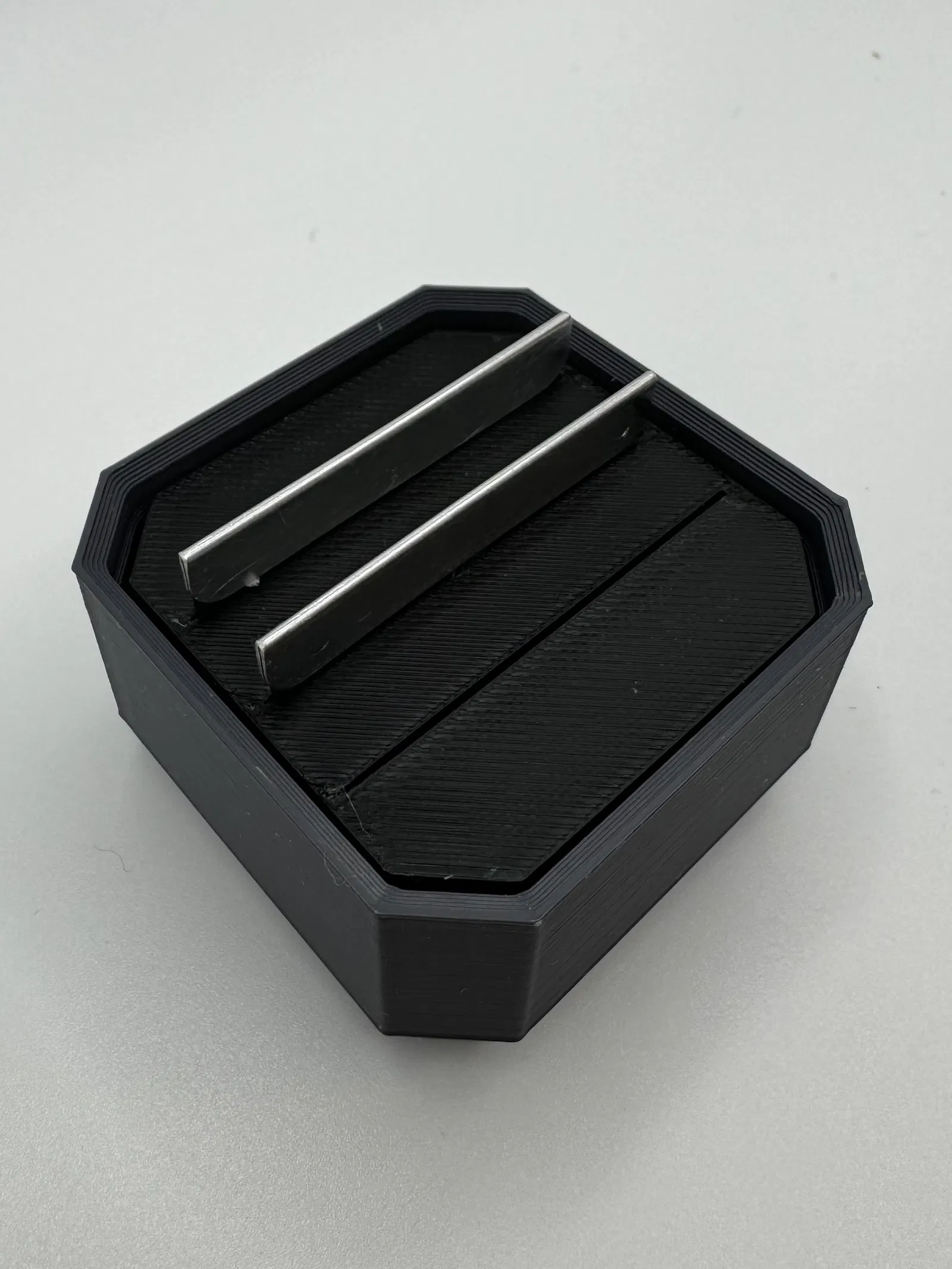 Đây là một cái đế đơn giản, lắp vừa khay MultiBoard kích thước 1x1x0.5. Phần đế này giúp bạn chứa dao cạo râu một cách gọn gàng, không cần lo nó bị xê dịch nhờ cách cố định bằng ốc M2.5.