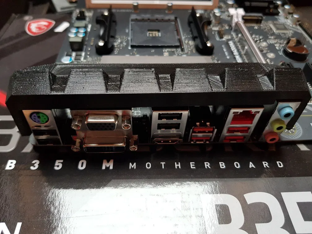 Chặn I/O cho main MSI B350M BAZOOKA. Bạn có thể chà nhám và sơn xịt để trông đẹp mắt hơn. Sản phẩm này thuộc danh mục Máy tính, rất phù hợp cho những ai cần một giải pháp che chắn cho cổng I/O của mainboard.