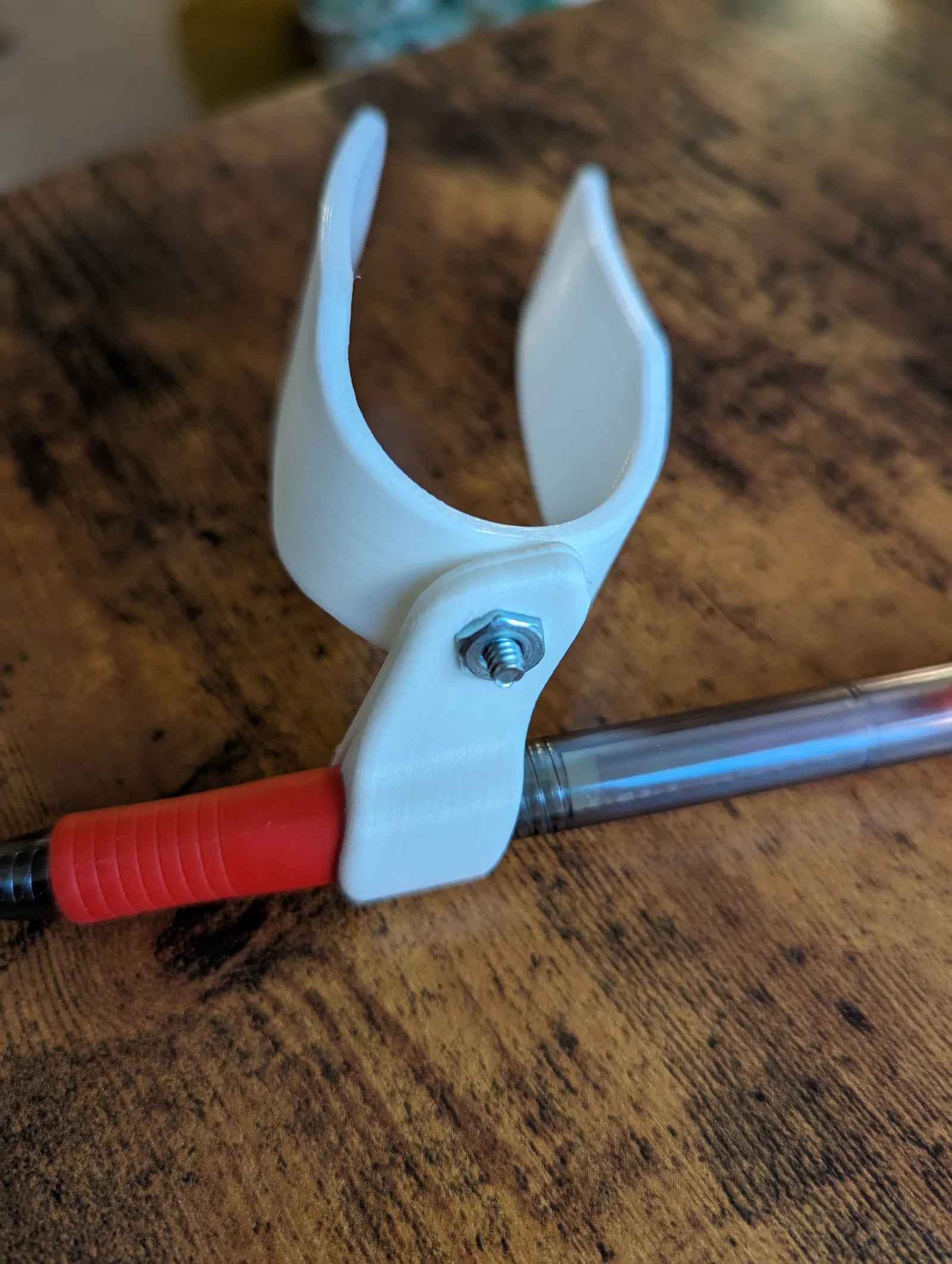 Đây là dụng cụ hỗ trợ viết có thể tùy chỉnh cho những người có thể cần trợ giúp khi cầm bút. Phần giữ bút được thiết kế đặc biệt để giữ bút PILOT G-2 vì đây là loại bút ưa thích của tôi và phần tay cầm dạng gel tạo điểm nén tiện lợi.