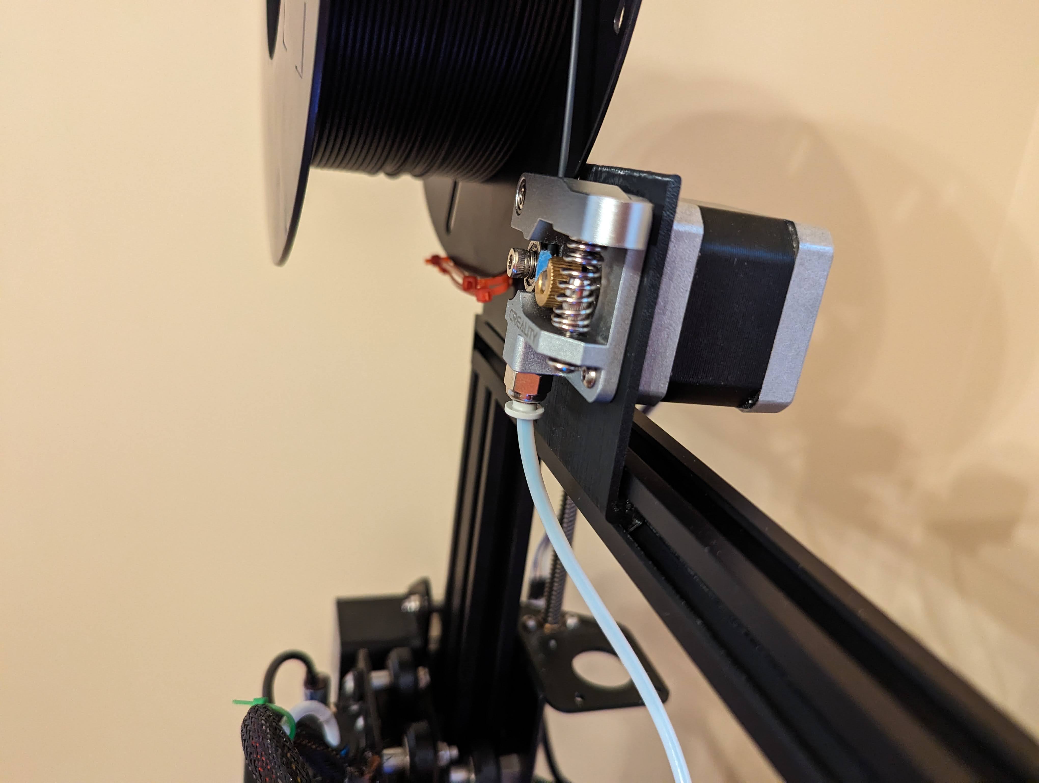 Lưu ý: cái mount dây tóc này được thiết kế để hơi lỏng lẻo và dựa vào việc gắn bằng ma sát, cái extruder sẽ di chuyển một chút nhưng không có sự thay đổi đáng chú ý nào về chất lượng in.