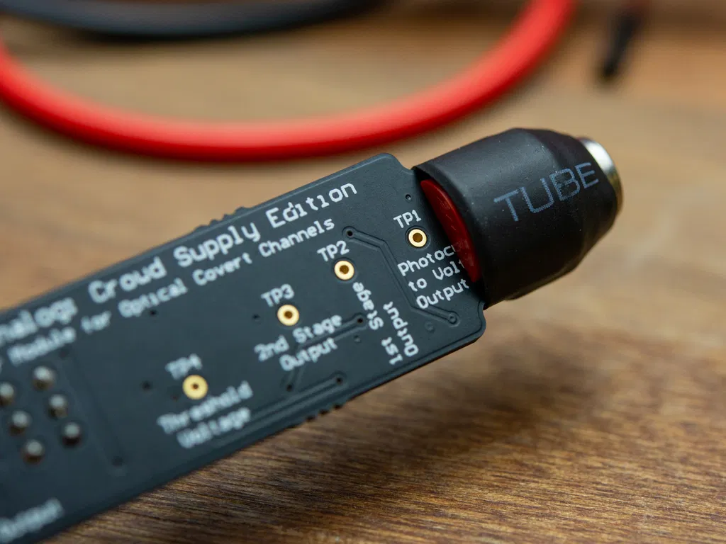 Đây là hai mảnh nhỏ, vừa vặn quanh dây cảm biến trên Optic Spy, được giữ cố định bằng một đoạn ống co nhiệt để hỗ trợ cảm biến và hy vọng bảo vệ nó khỏi bị gãy một cách vô tình khi cất trong hộp dụng cụ cùng với các thiết bị điện tử khác của bạn.