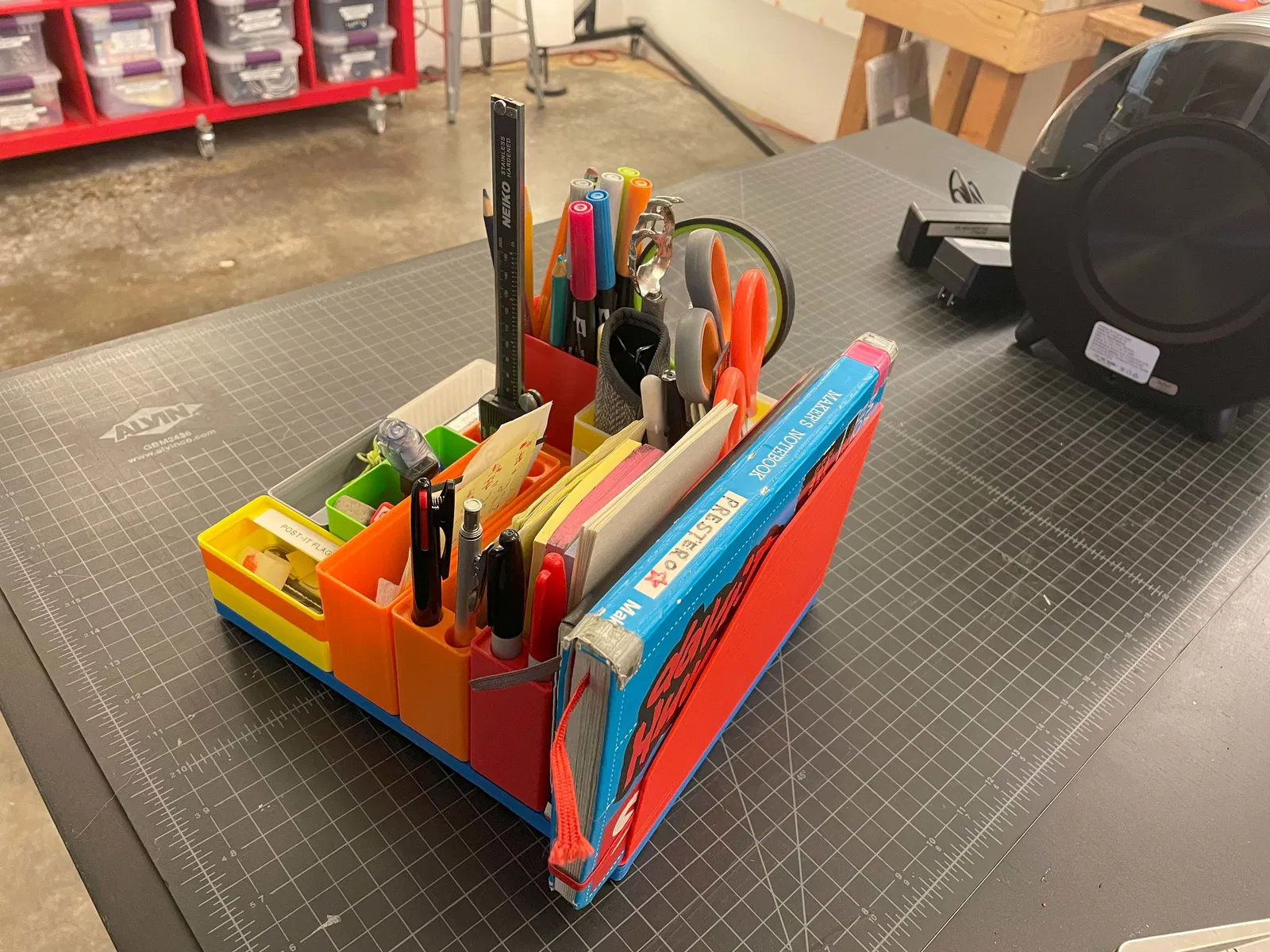 Giá đỡ sổ tay Moleskine cho Gridfinity. Chỉ cần 5x1 ô vuông trên đế Gridfinity là xài được liền. Đựng vừa hai cuốn sổ tay Moleskine loại lớn (5 x 8.25 inch) luôn nha. Sổ tay Maker's Notebook thì hơi thừa ra một chút ở mép, như hình đó. Nhớ xài có chừng mực nha mấy ông bà ơi - đồ đạc Gridfinity nó dễ nghiện lắm, coi chừng mấy ổng khoái chét đầy bàn làm việc bằng mấy cái hộp nhỏ nhỏ đó à.