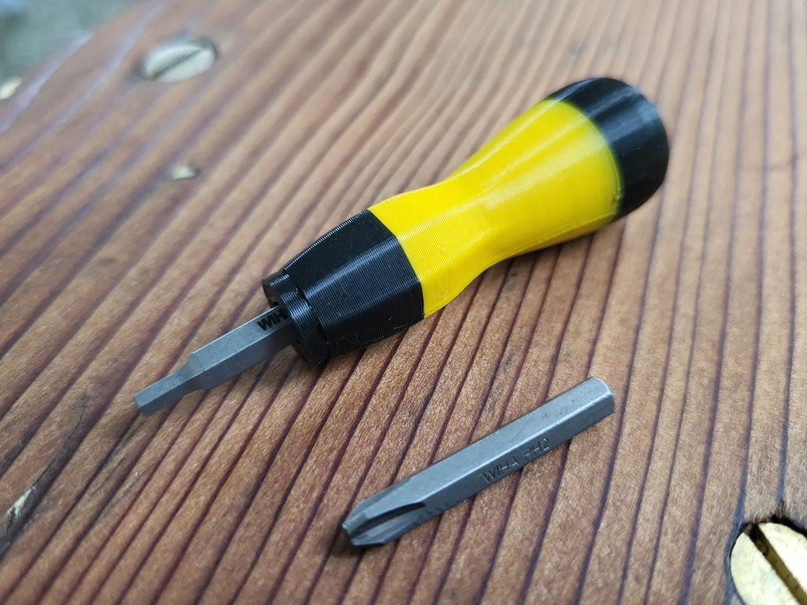 Đây là một tay cầm tua vít ngắn cho các bit lái 4mm. Các bit chèn vào khoảng 8mm. Có chỗ cho một nam châm 2mm để giữ các bit ở vị trí. Nó được thiết kế để lắp vừa mà không cần nam châm, đây là cách mà tôi đã sử dụng nhiều nhất và có tay cầm dành riêng cho một số bit lái. Nếu bạn muốn dễ dàng thay đổi các bit, hãy tăng kích thước một chút mỗi lần cho đến khi bạn có được kích thước lý tưởng. Nếu bạn làm như vậy, bạn sẽ muốn thêm nam châm 2mm để giữ nó ở vị trí.