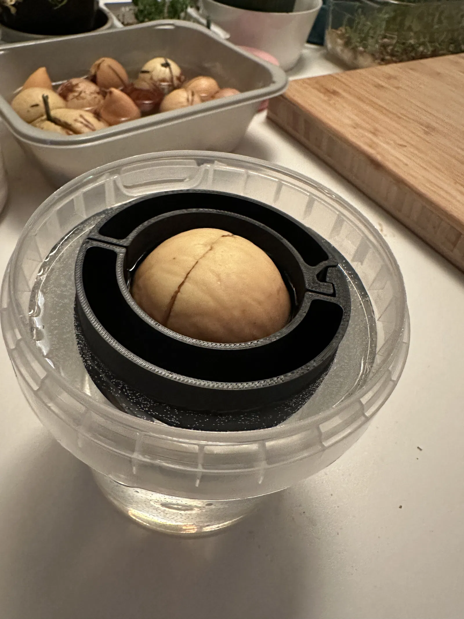 Mô hình Nổi hạt bơ mở được bởi @DominikCisar, một thiết kế độc đáo giúp bạn ươm mầm hạt bơ một cách dễ dàng. Phiên bản này đã được tối ưu hóa bằng cách loại bỏ lớp hỗ trợ đáy không cần thiết, giúp tiết kiệm vật liệu và thời gian in ấn.