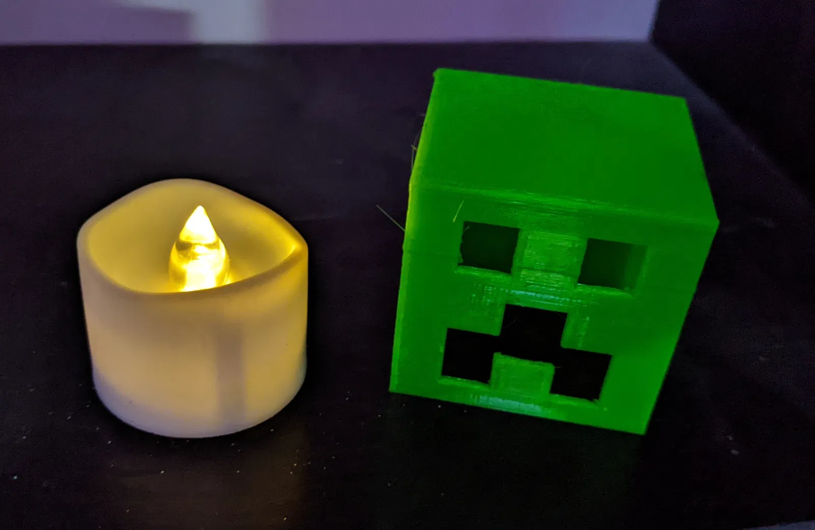 Một lớp phủ ánh sáng Creeper Minecraft cho đèn trà LED. Mô hình này được thiết kế bởi một trong những con trai của tôi O-MC. Đèn trà LED mà chúng tôi có có đường kính khoảng 1,375 ", bạn luôn có thể mở rộng quy mô khi bạn có kích thước khác. Sau khi in nó trông hoàn hảo!