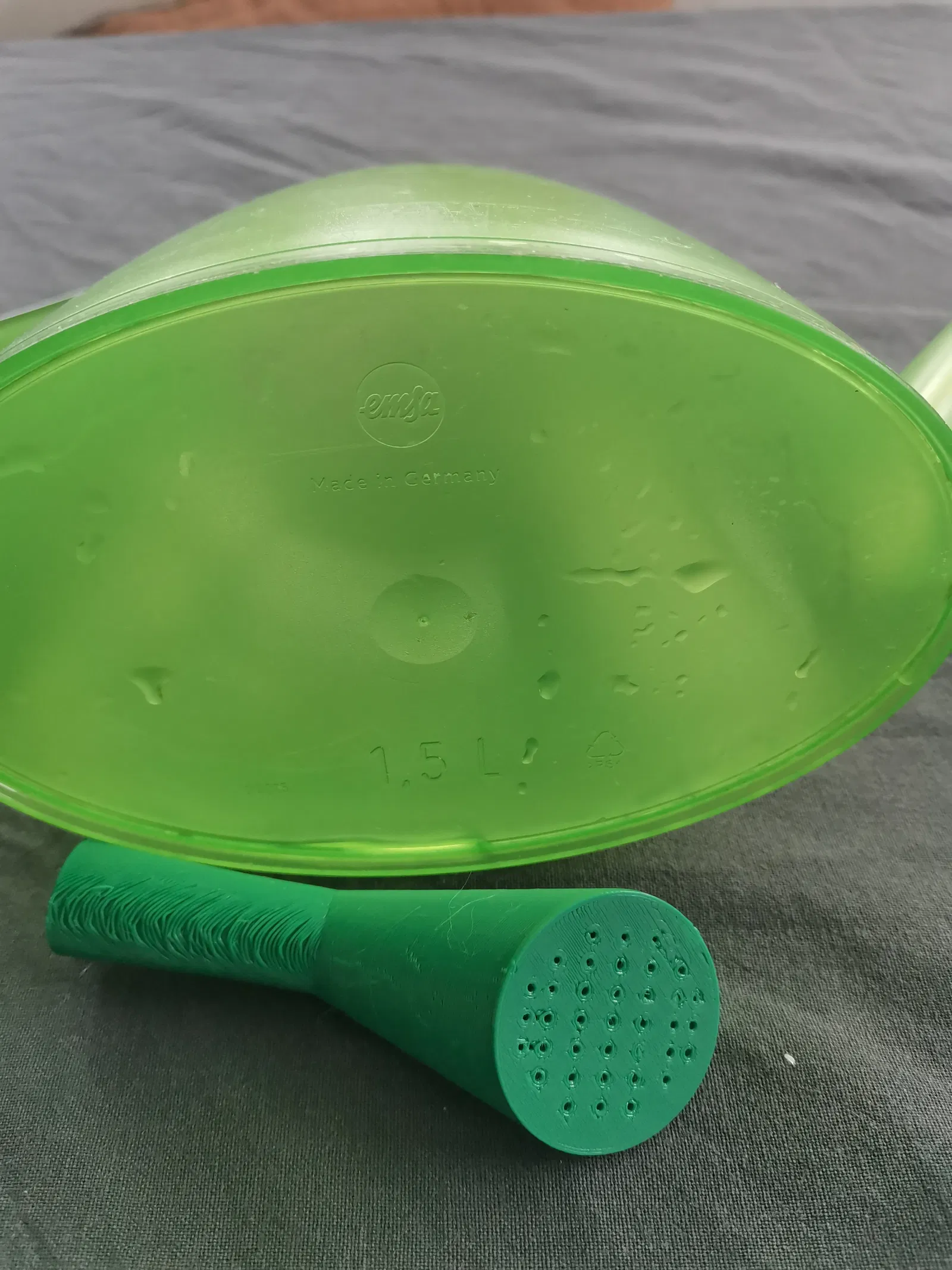 Đầu rót đơn giản, dễ in cho bình tưới Emsa 1.5L. Chỉ cần in mặt trước xuống, dùng support tự động là được. Đã thử in bằng PETG với đầu phun 0.4mm và độ cao lớp 0.32mm.