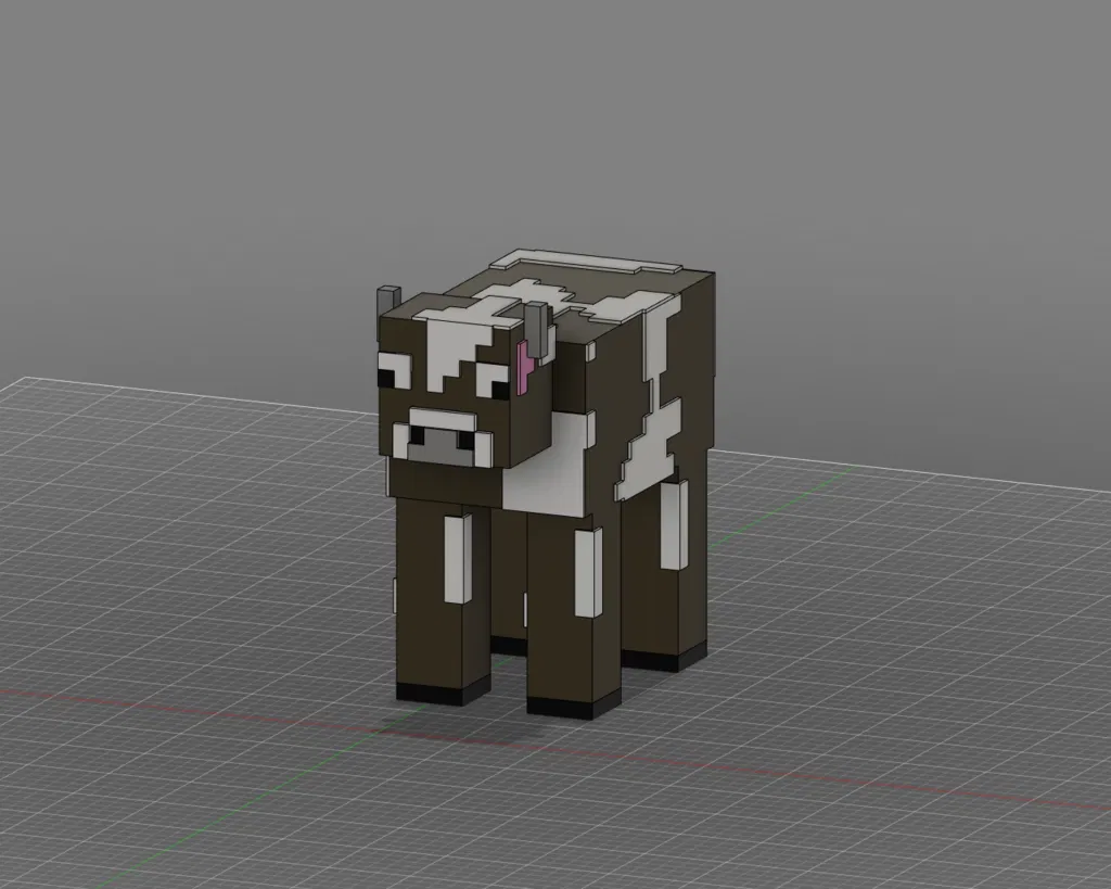 Mô hình bò Minecraft ráp nối với nhau, các lỗ không cần support, riêng phần đầu ráp nối cần support. Có thể cần đục lại một chút các lỗ ở móng, mũi và tai nếu các phần ráp nối không vừa. Giấy phép: CC - Ghi công - Phi thương mại - Chia sẻ tương tự.