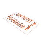Việc bao bọc một bản in 2D bằng mực hoặc laser giống như việc nhúng một cái đinh hoặc nam châm vào một bản in, và chúng ta có thể sử dụng kỹ thuật này với một số sợi trong suốt để có được một tấm panel đẹp, chi tiết cho nắp của chúng ta mà không cần phải sử dụng một vòi phun siêu mảnh. (Có các biến thể hoàn toàn in 3D, nếu bạn có một cái 0.2x). Trong phần "Tệp khác", bạn sẽ tìm thấy các tệp SVG cho các tấm panel; có các phiên bản dương và âm, vì vậy bạn có thể chơi với màu nền và/hoặc màu trước, thêm một logo đầy màu sắc, v.v.