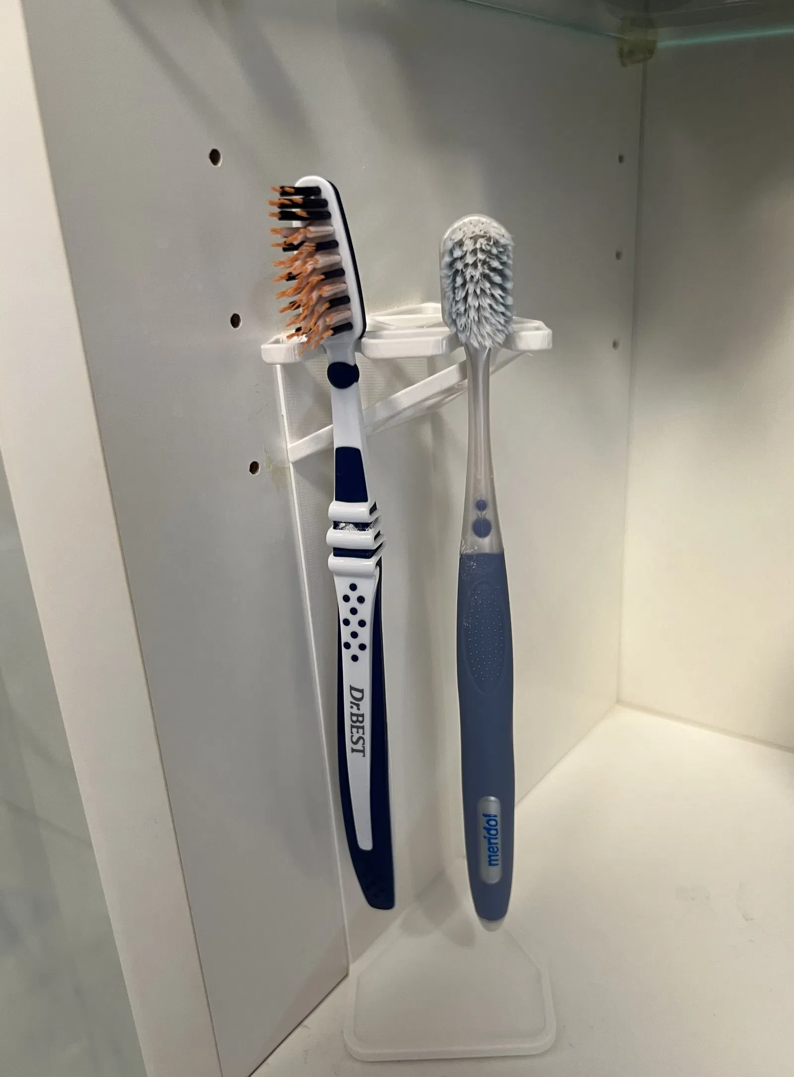 Một cái đế cắm bàn chải đánh răng đơn giản, có thể dùng cho tối đa hai cây. In bằng PLA với độ cao lớp 0,2 mm và hỗ trợ organic. Chúc bạn in vui vẻ!