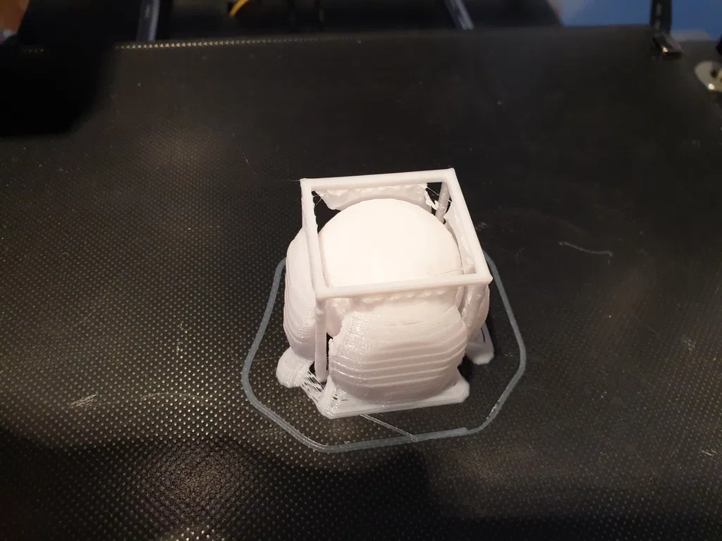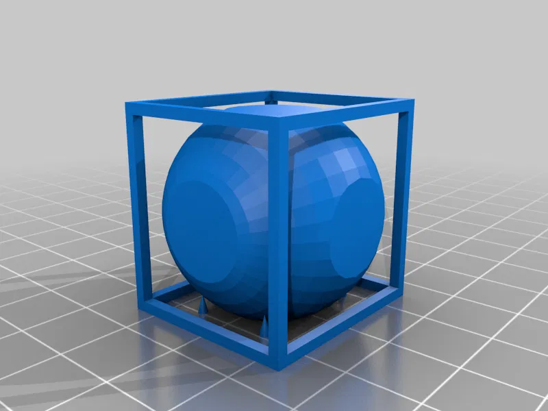 Tui gặp khó khăn lúc in cái "Ball in a Cube" đó. Nên tui tự thiết kế cho mình một cái có 6 mặt phẳng. Nếu in ngon lành thì bạn sẽ không thấy cục bi nó nằm ở đâu trên bàn in hết. Tui mong là bạn sẽ không gặp nhiều trục trặc lúc in cái này. Chắc là cái hộp nó hơi nhỏ thiệt, nhưng mà nó chạy được và không có bị gãy.