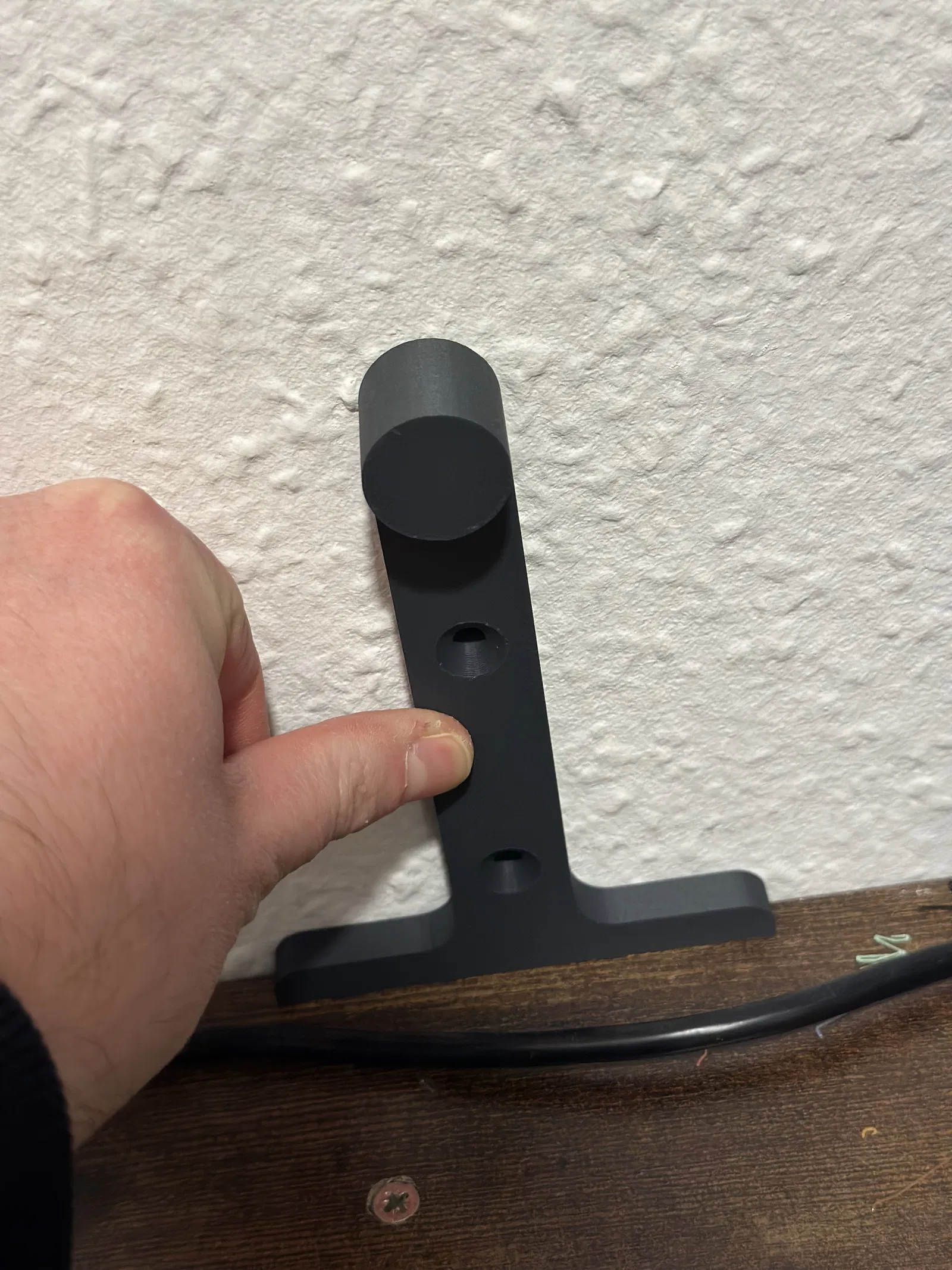 Ý tưởng đằng sau chân đỡ là để hỗ trợ giá đỡ ống chỉ khi sử dụng ống chỉ nặng. Bạn có thể gắn chân đỡ lên tường và trượt giá đỡ ống chỉ vào chân đỡ sau khi đặt ống chỉ lên đó. Đây là một vật dụng tùy chọn, giá đỡ ống chỉ cũng hoạt động mà không cần chân đỡ.