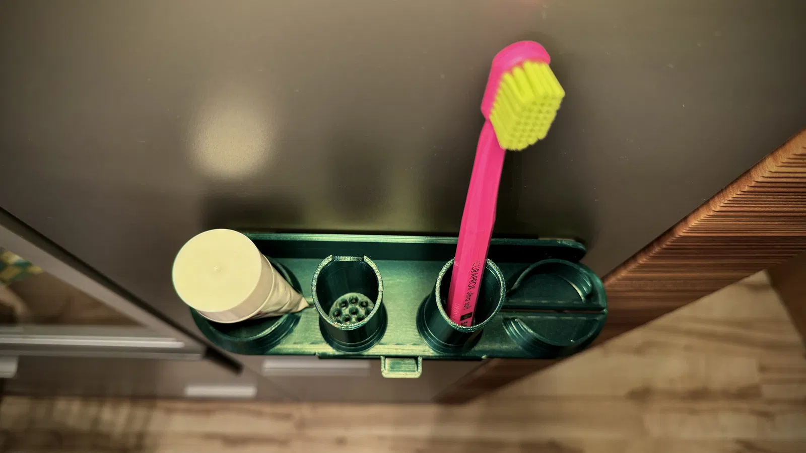 Kệ cho kem đánh răng và bàn chải đánh răng.