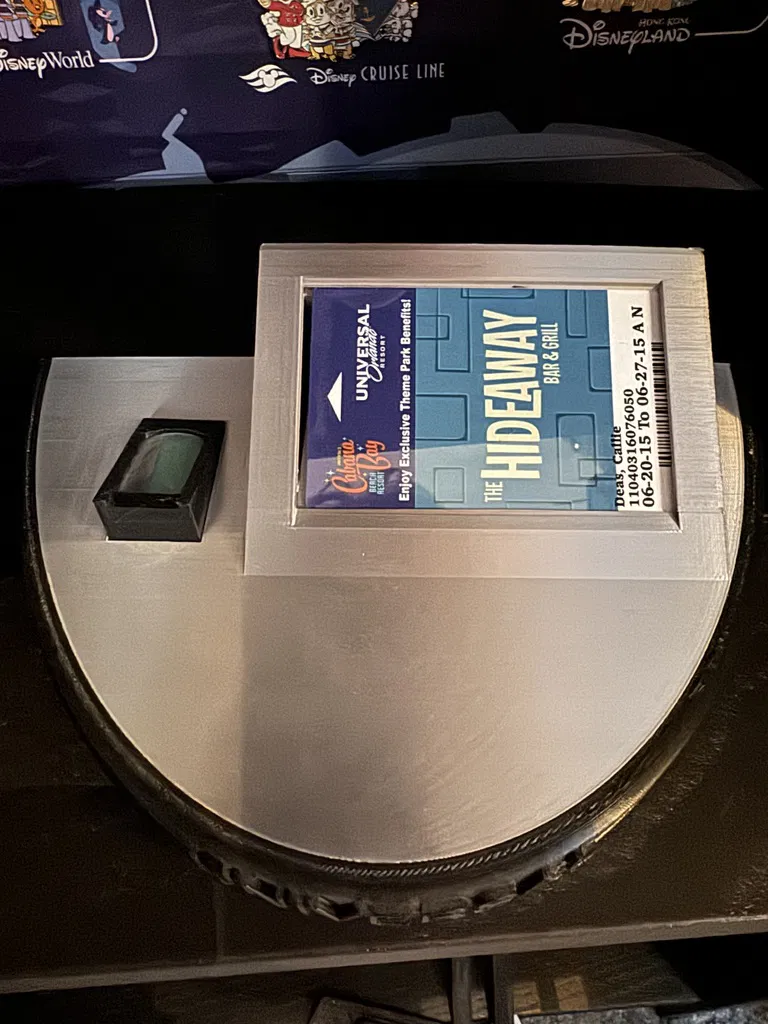 Lấy cảm hứng từ máy quét ở Universal Studios. Có thể dùng để giữ vé/thẻ thành viên/chìa khóa khách sạn.