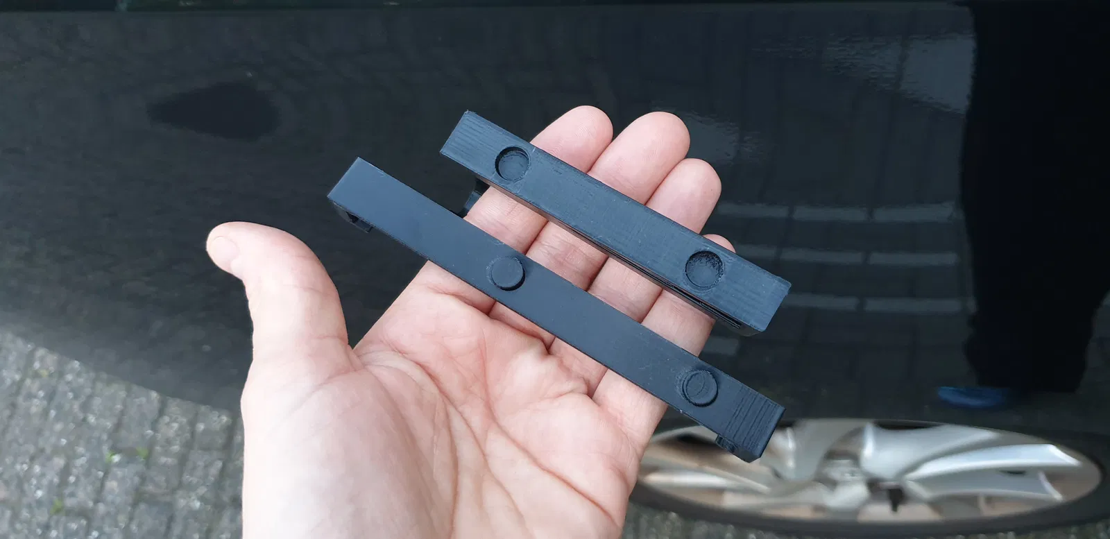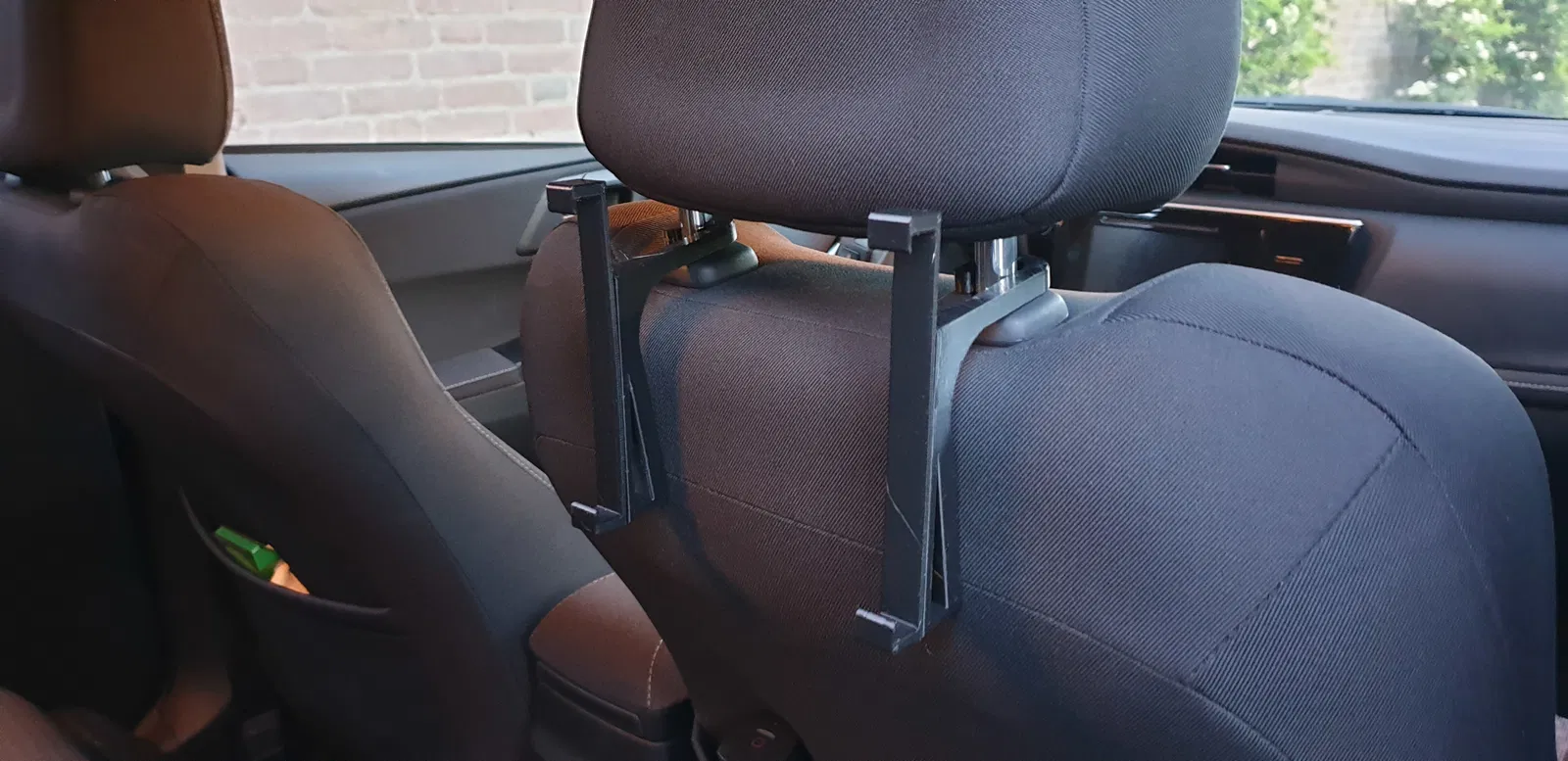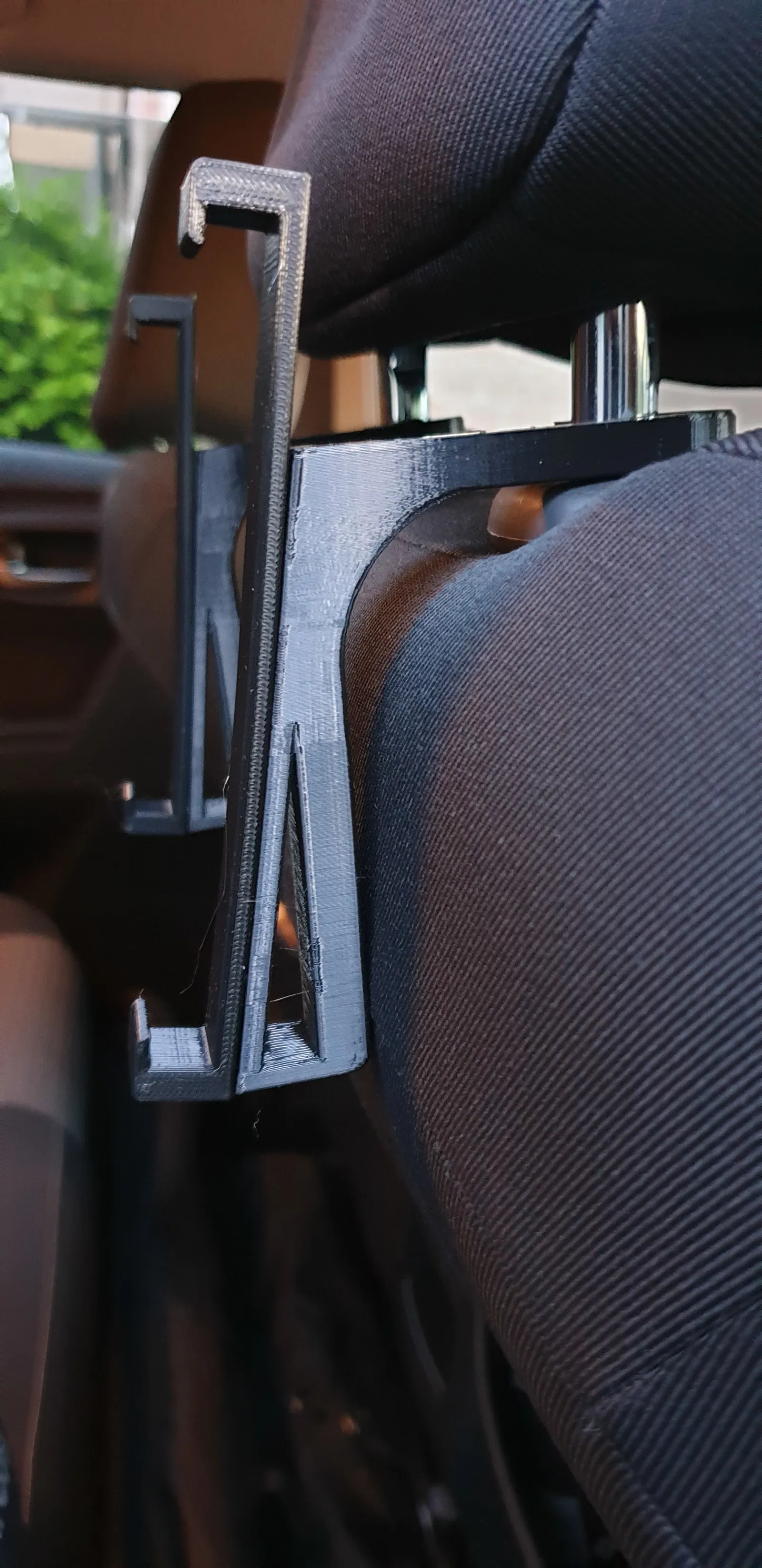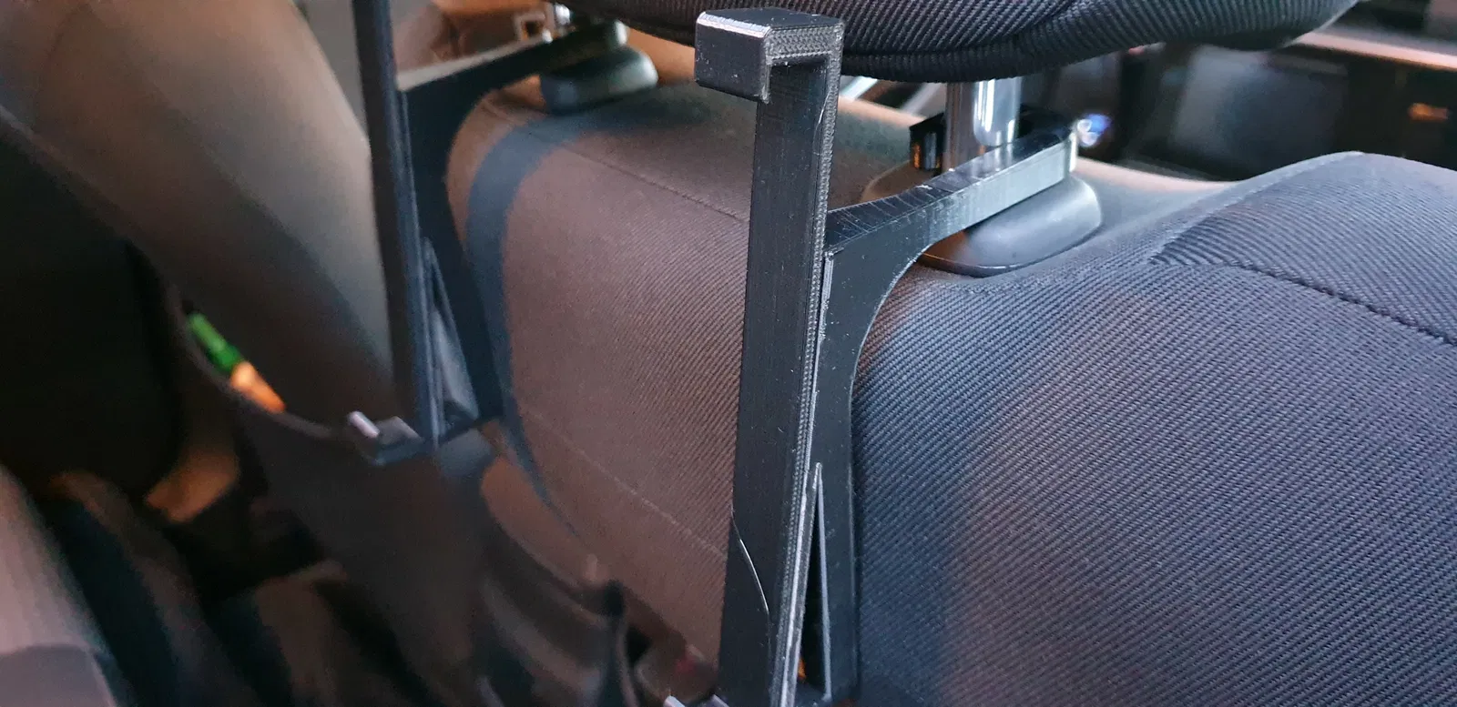 Tao tạo cái này cho máy tính bảng Nvidia Shield Tuy nhiên lưu ý là có thể mày tự thiết kế cái kẹp máy tính bảng riêng rồi dán lên mấy cái móc tao làm. Vì là hai cái móc rời nên khoảng cách giữa hai chốt gác đầu ghế không quan trọng.