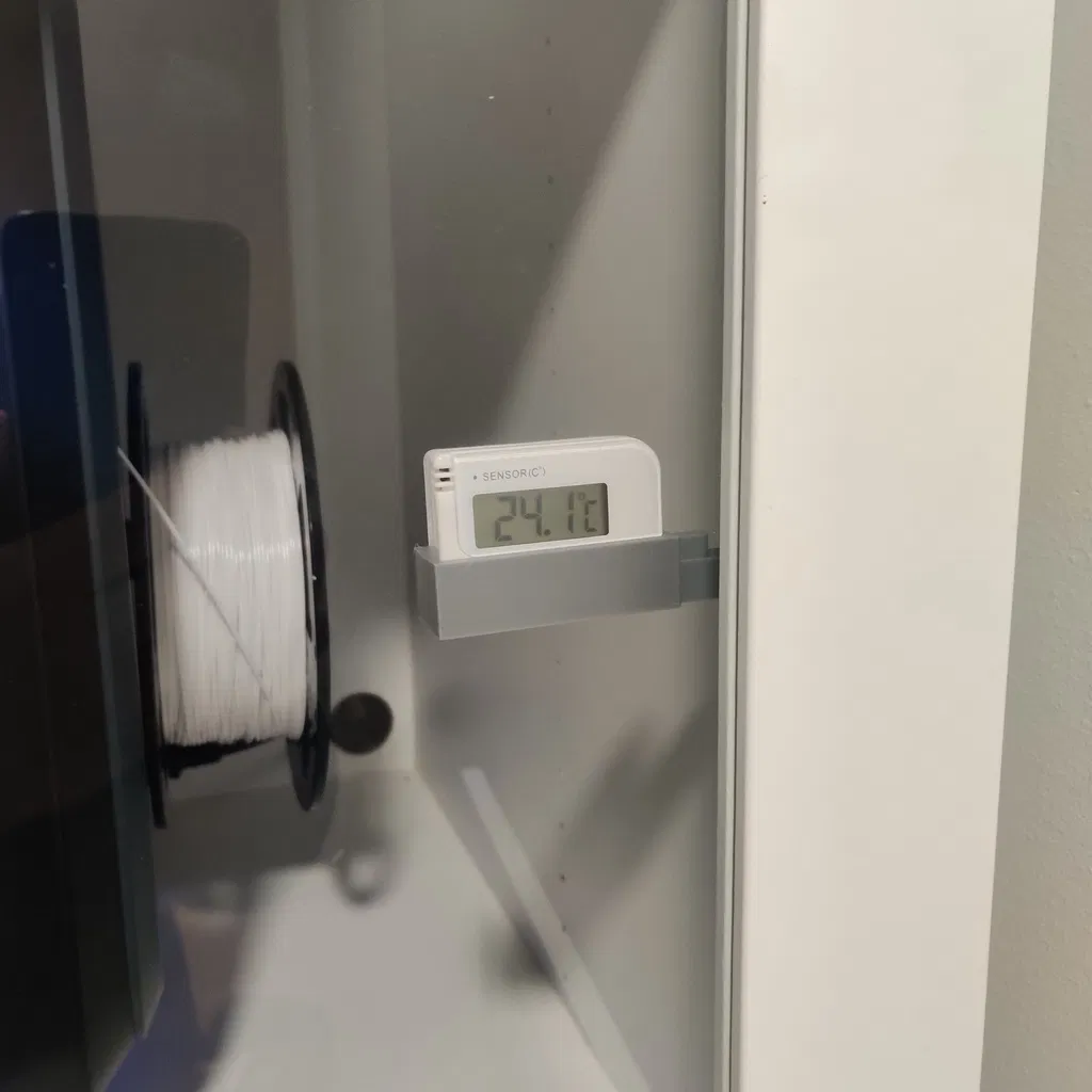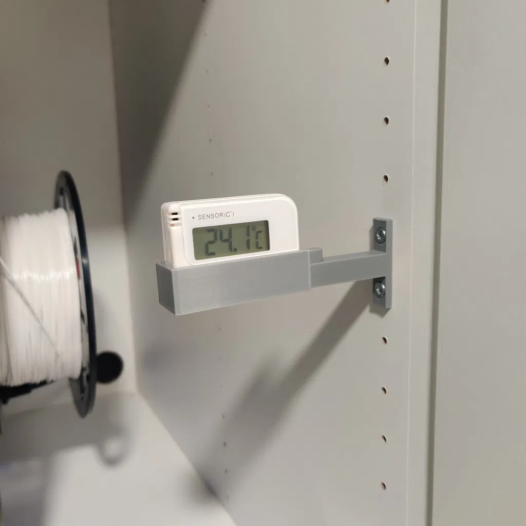 Tao cần xem tủ Ikea của tao nóng cỡ nào nên tao thiết kế cái đế này bằng Fusion 360. Cái đế này bắt ốc vào tủ Ikea Platsa, nhưng có thể dùng cho nhiều loại kệ Ikea khác. Máy đo nhiệt độ là của Clasohlson, nhưng có nhiều hiệu khác trên thị trường. In bằng PLA, độ phân giải 0.2.