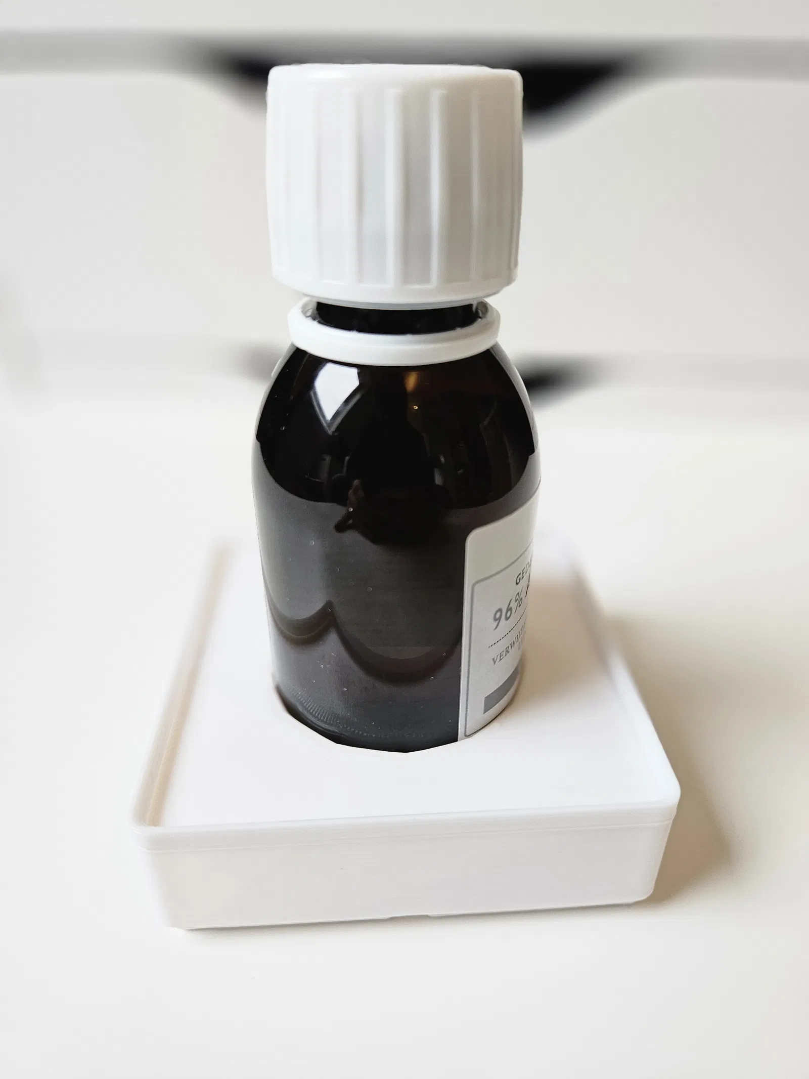 Cái này để đựng chai cồn tẩy rửa, cho nó vừa với hệ thống Gridfinity. Gắn vô là xài liền, khỏi loay hoay tìm chỗ để.