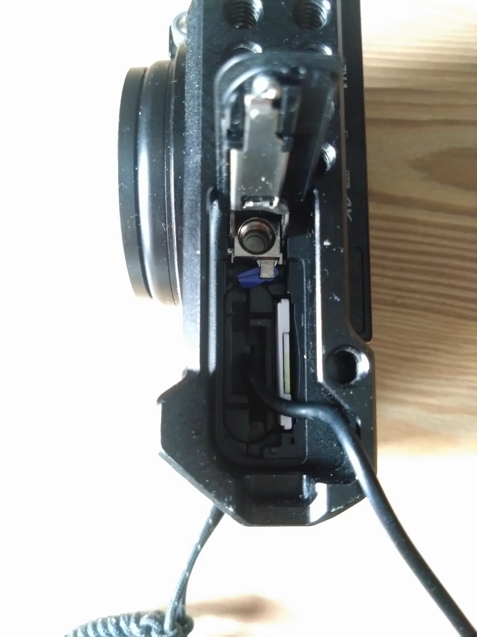 Giải pháp bảo vệ cửa pin máy ảnh Sony ZV-1 khi sử dụng lồng SmallRig và pin giả. Cục bịt giúp cửa pin không bị hư hại, dây pin giả vẫn luồn ra ngoài tiện lợi. Nên bắt thêm ốc để cố định chắc chắn.