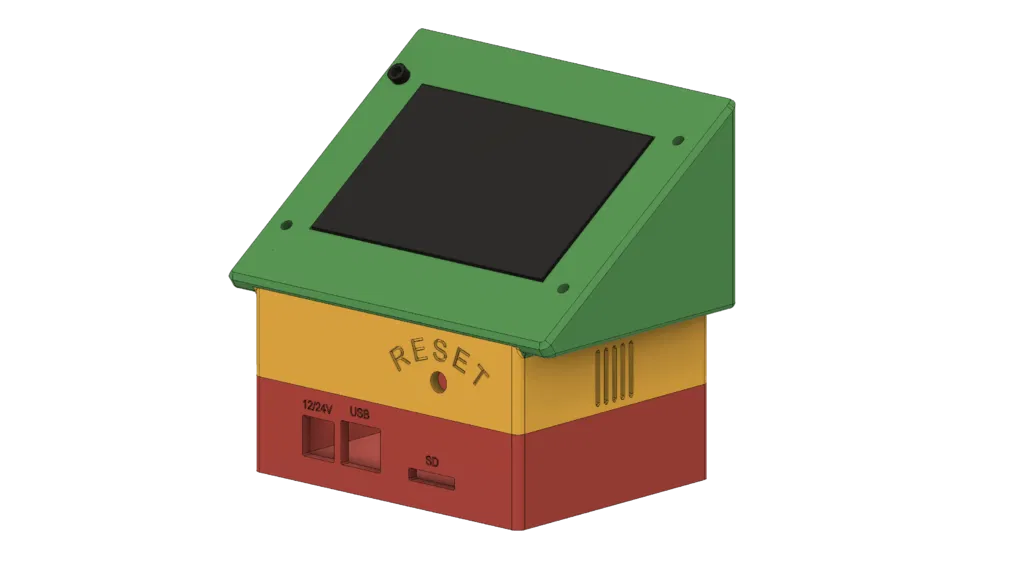 Vỏ case cho bo mạch DLC32 V2.1 kết hợp màn hình cảm ứng TS35-R, thiết kế cho ứng dụng Laser. Bao gồm 3 phần chính, có khe cắm dây nạp, lỗ dành cho nút RESET và giá đỡ quạt 40x40mm. Lý tưởng cho các dự án DIY.