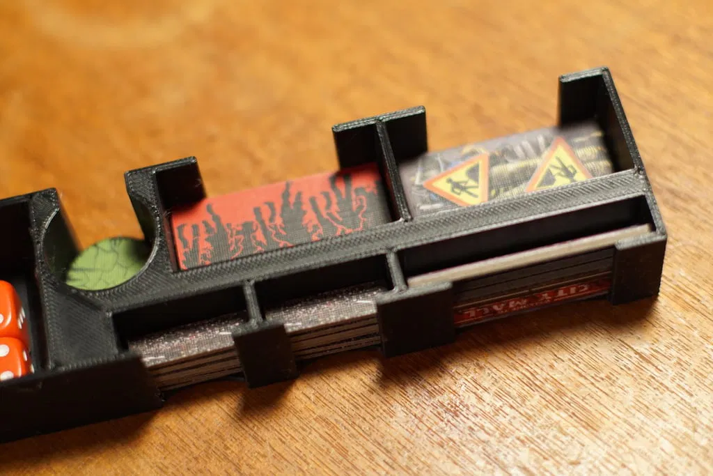 Khay đựng token và thẻ bài cho game Zombicide Toxic City Mall. Bộ sắp xếp này thay thế các miếng đệm hộp zin theo game, giúp bạn quản lý đồ đạc gọn gàng hơn. Dùng nhựa PLA, in không cần hỗ trợ.