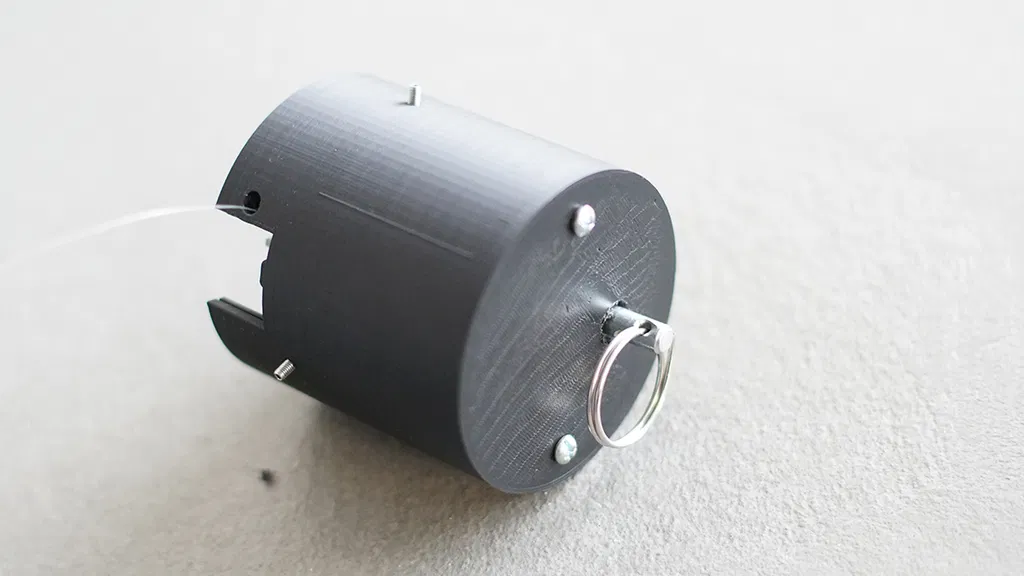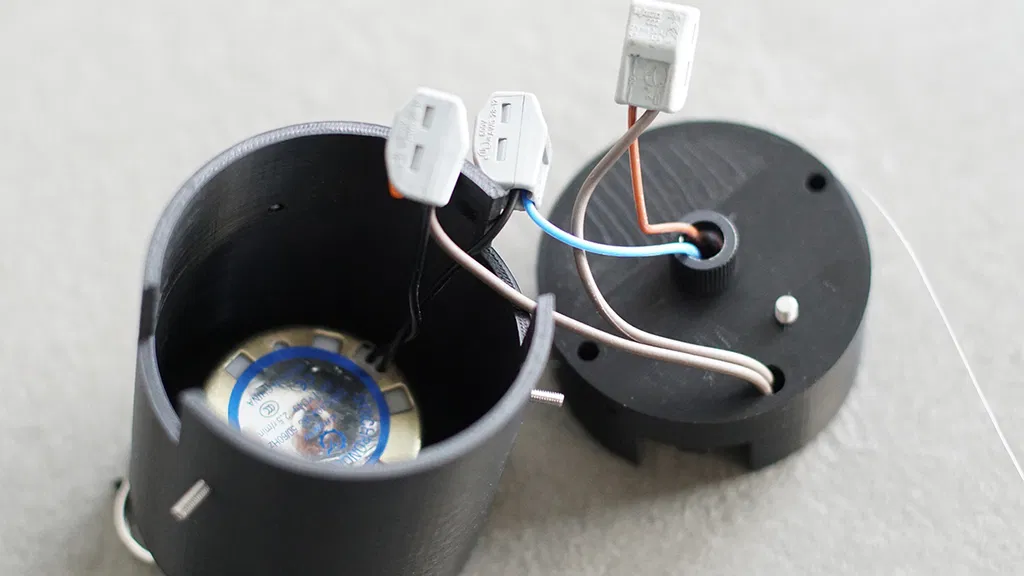 Tôi đã bắt vít cái vỏ in vào trần nhà bằng một con vít và gắn một cái khoen kim loại lớn vào trần nhà để cố định toàn bộ cấu trúc khỏi bị rơi.