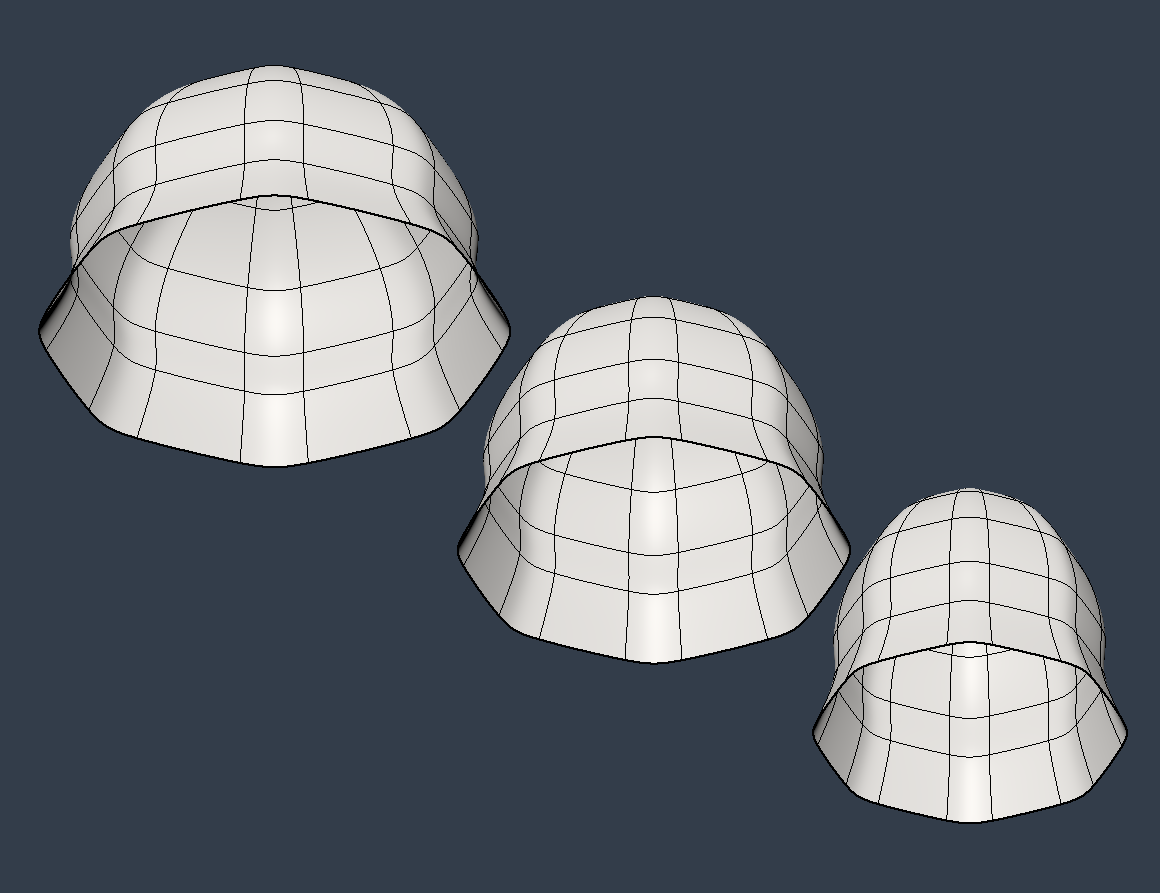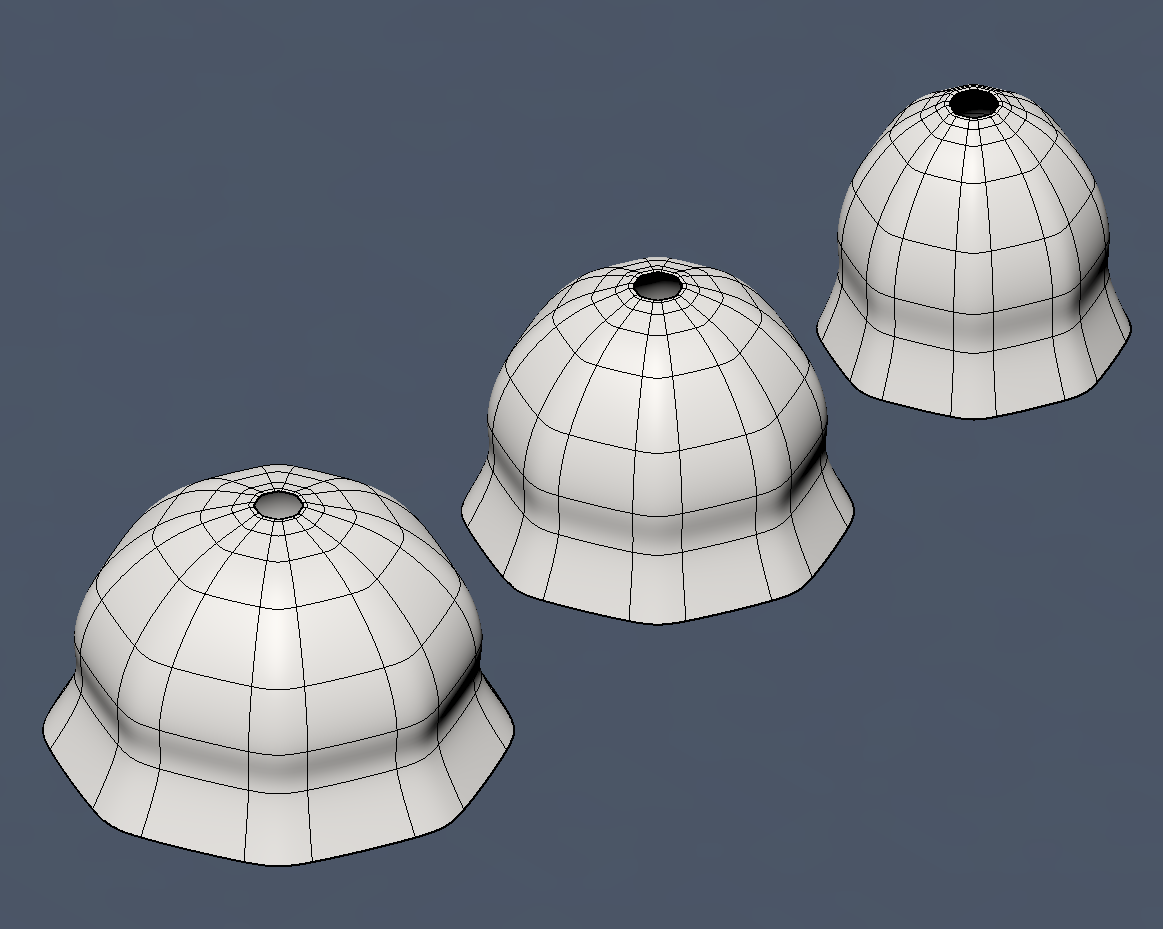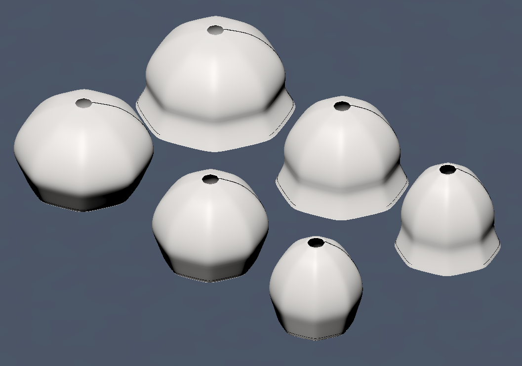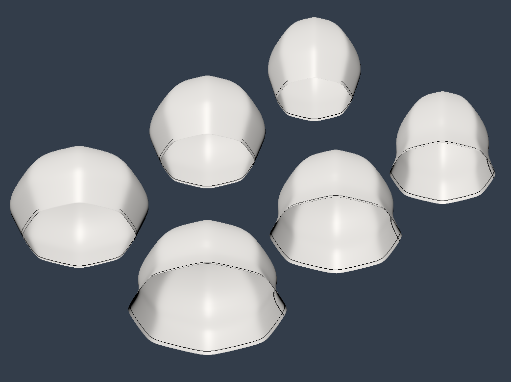 Sáu kích cỡ chao đèn hình bát giác bo tròn, tạo ra các hiệu ứng tán xạ và làm mềm ánh sáng khác nhau.
